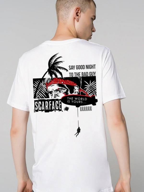 Scarface Yaralı Yüz Movie Sırt Baskılı Tasarım Beyaz Tişört