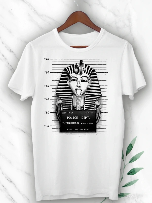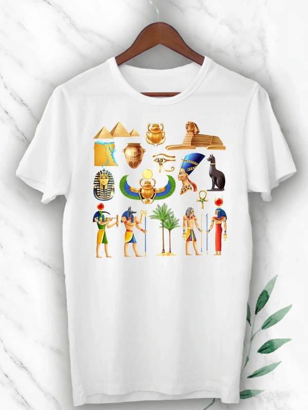 Unısex Beyaz Antik Mısır Egypt Firavun Baskılı Tişört