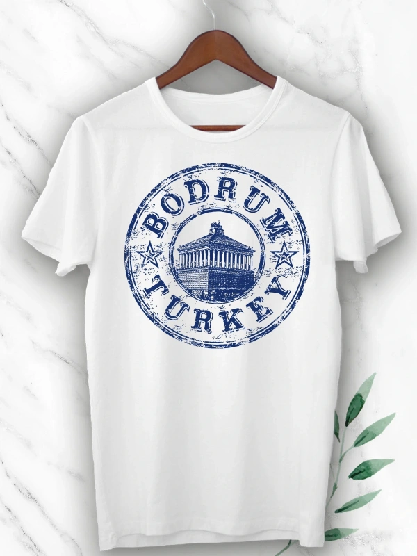 Unısex Beyaz Mitoloji Bodrum Baskılı Tişört