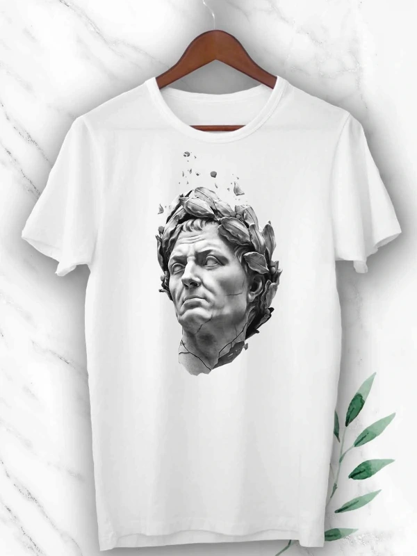 Unısex Beyaz Mitoloji Sezar Heykel Baskılı Tişört