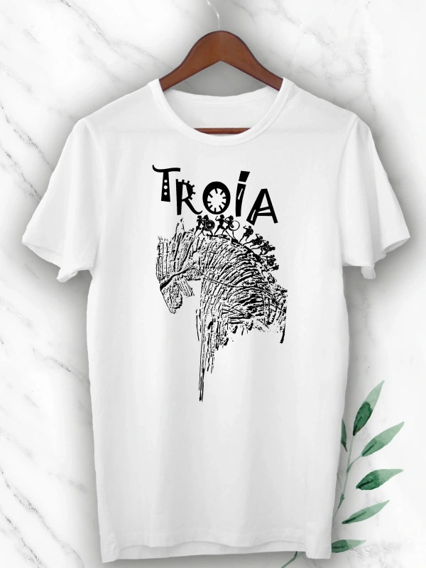 Unısex Beyaz Mitoloji Truva Atı Baskılı T-Shirt