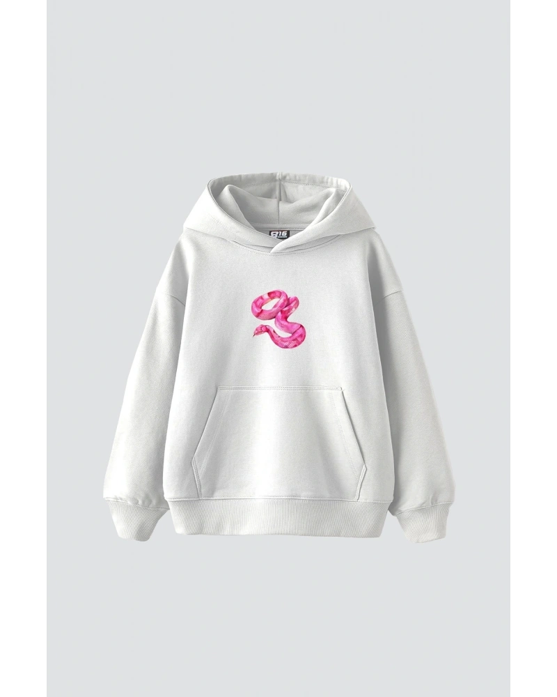 YQYQ----Oversize Pembe Saçlı Kız Ve Tavşan Tasarım Baskılı Unisex Kapüşonlu Sweatshirt Hoodie Beyaz