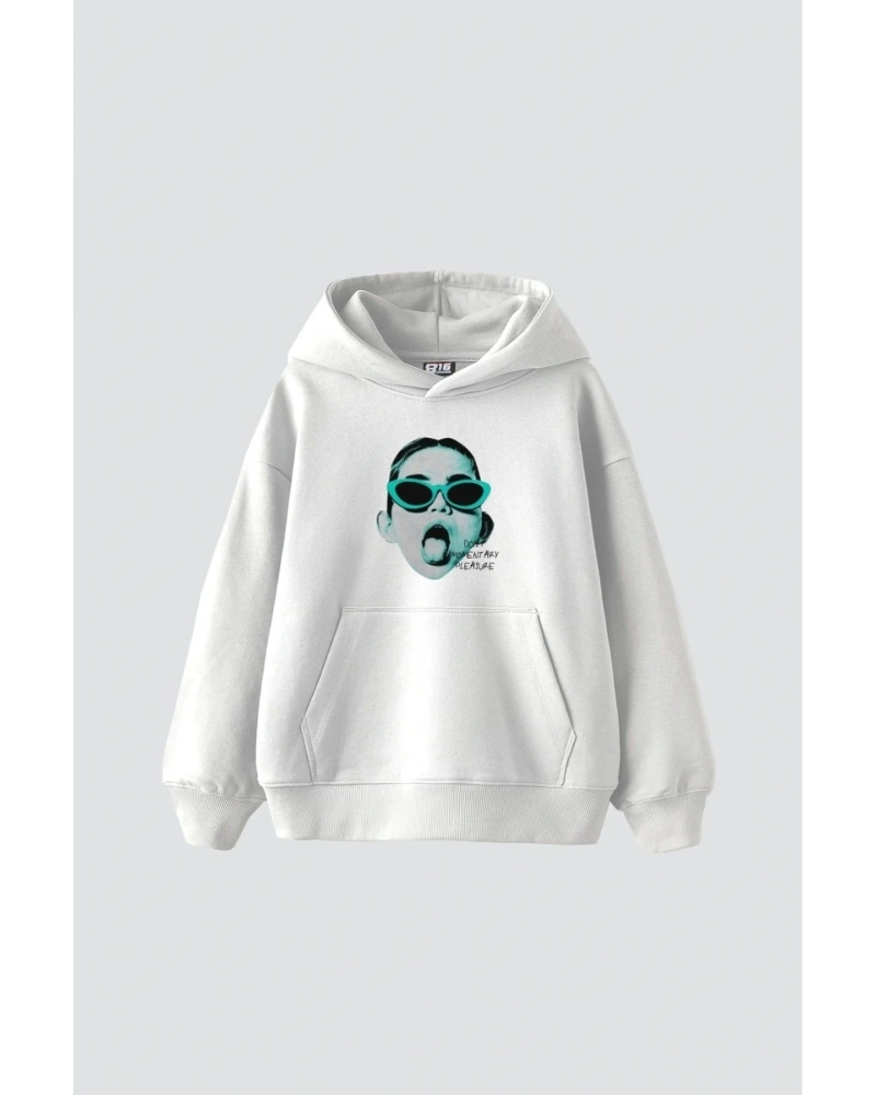 YQYQ----Oversize Mor Saçlı Lila Genç Kız Tasarım Baskılı Unisex Kapüşonlu Sweatshirt Hoodie Beyaz