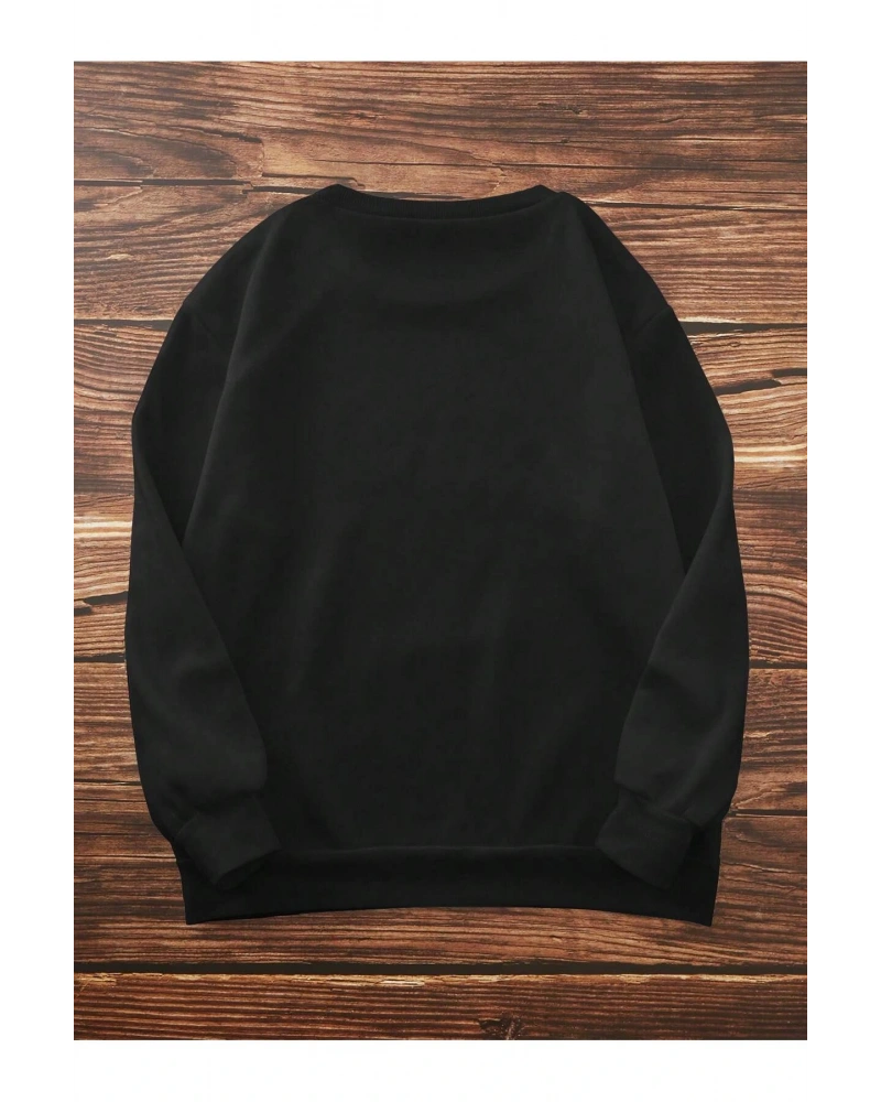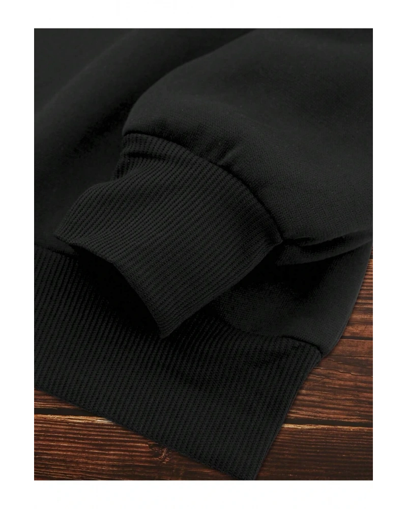 Siyah Yakasız Tüy Baskılı Unisex Sweatshirt