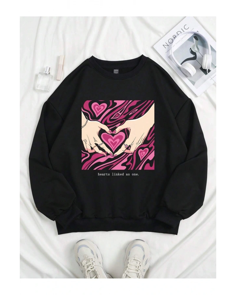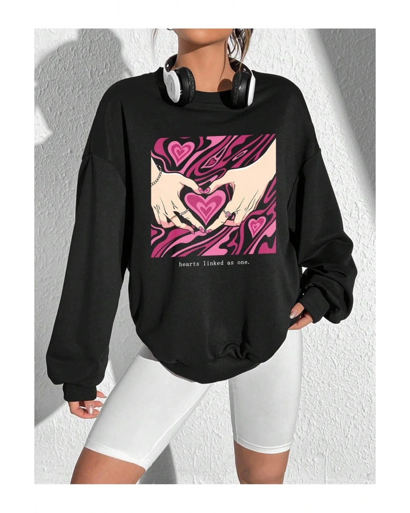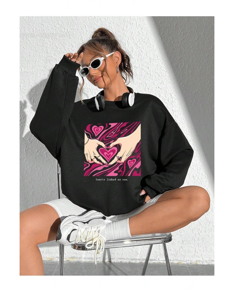 Siyah Yakasız Tüy Baskılı Unisex Sweatshirt