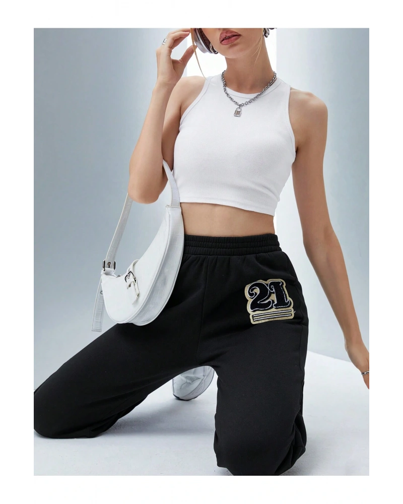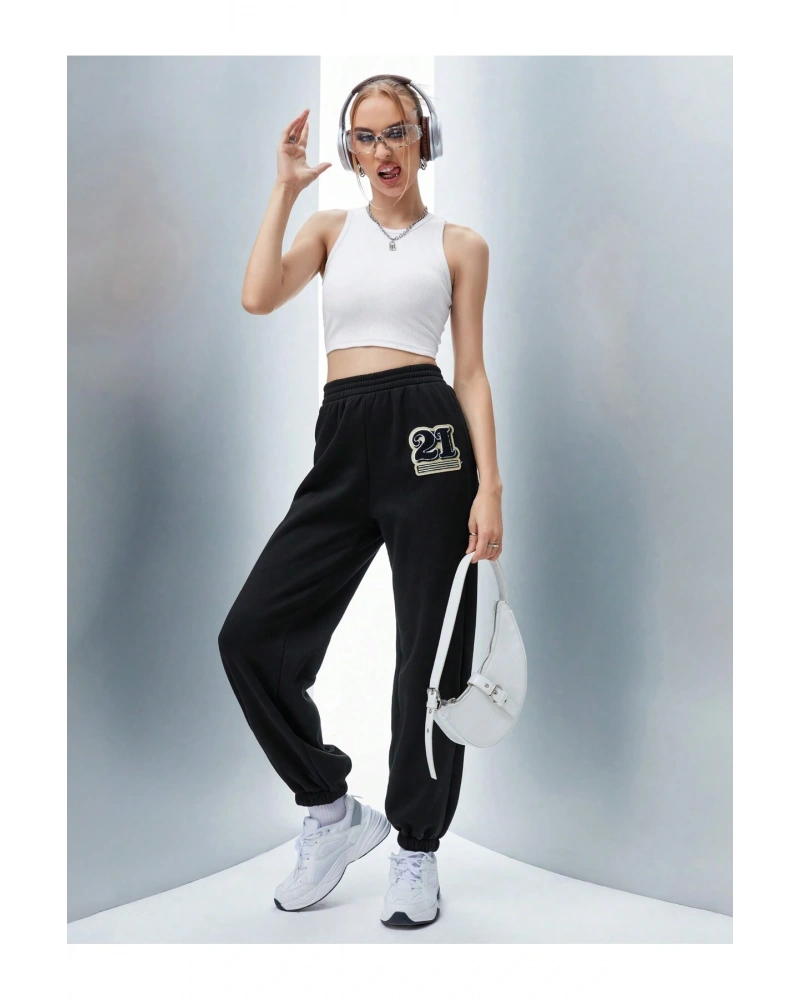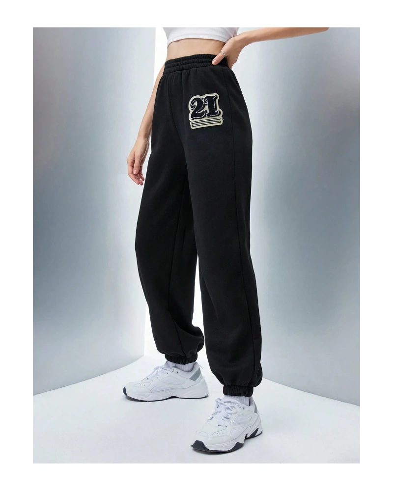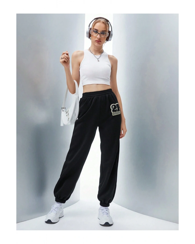 Qutie Letter Graphic Elastic Waist 4 Mevsim Eşofman