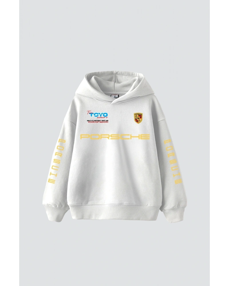 YQYQ----Oversize Araba Nissan Tasarım Baskılı Kapüşonlu Sweatshirt Hoodie Beyaz