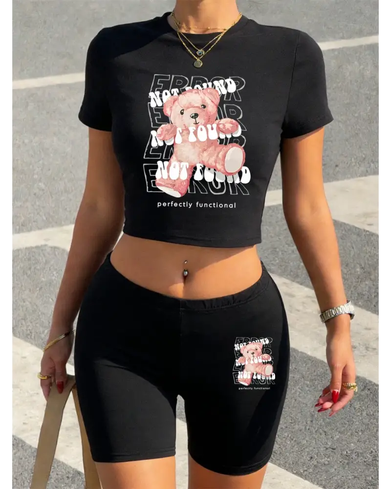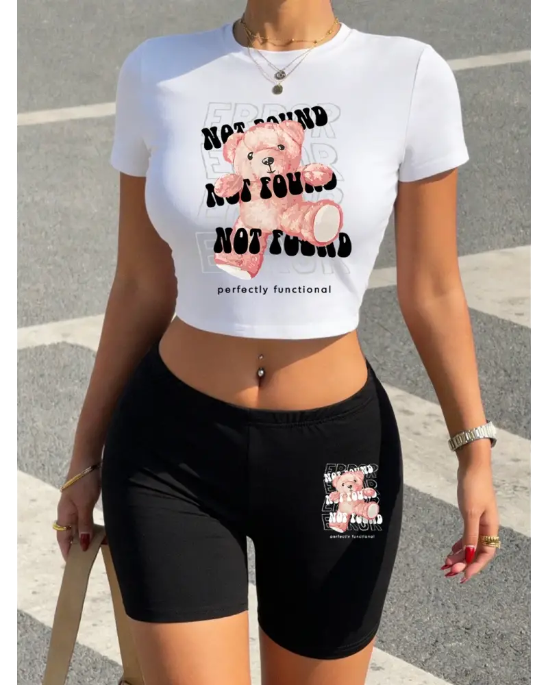 Rahat Mükemmel Fonksiyonel Ayı Baskılı Kırpma Üstleri Şort Kadın İki Parçalı Set Tişörtler Yu kaliteli malzeme ve konforlu kullanım sunan bir üründür. Günlük kullanım için ideal olup uygun fiyat ve hızlı kargo avantajıyla sunulmaktadır.