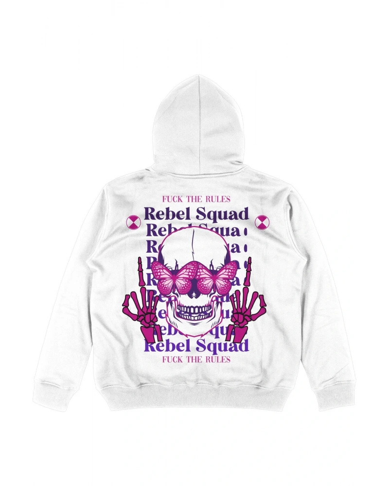 Rebel Squad Beyaz Oversize Unisex Kapüşonlu Sweatshirt Hoodie