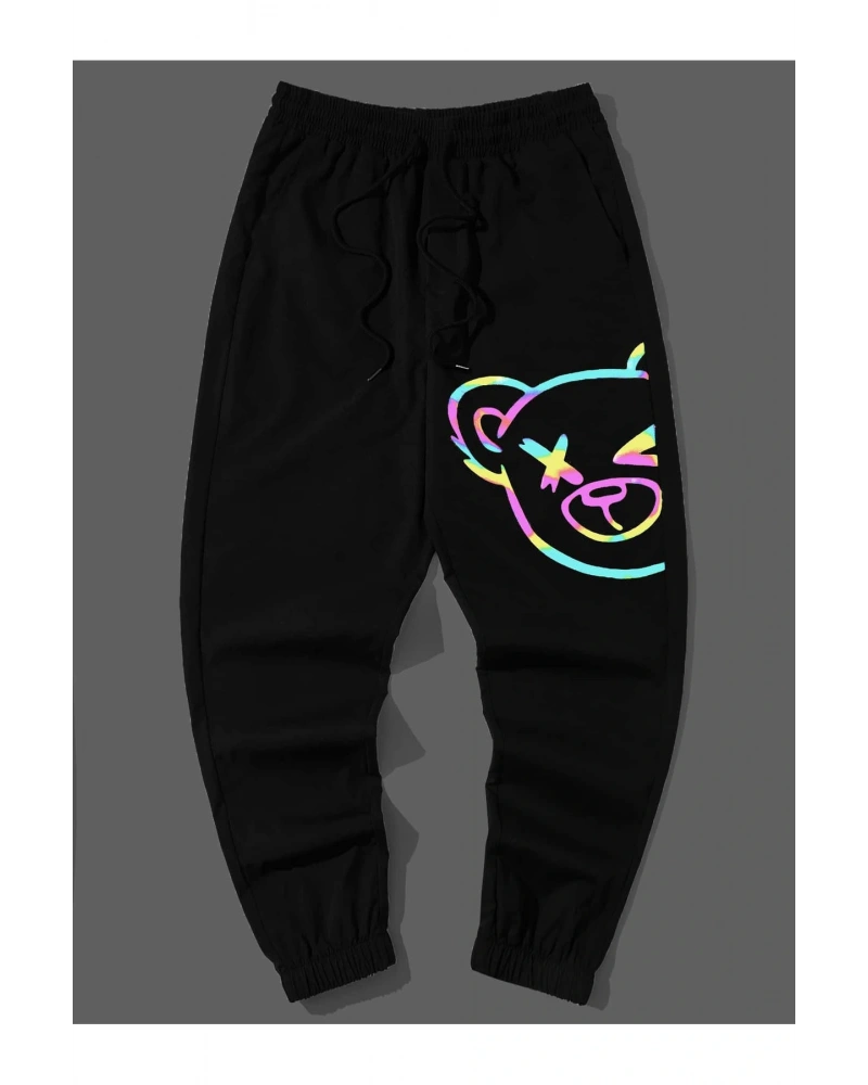 Reflective Cartoon Graphic Drawstring Waist Pants