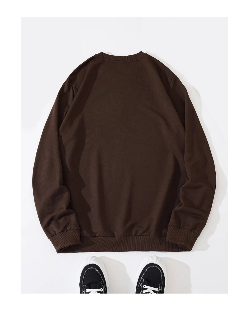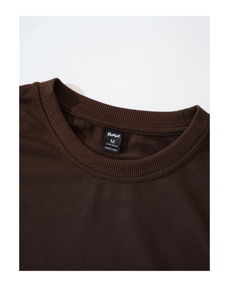 ROMWE Guys Ghost & Slogan Graphic Sweatshirt Kahverengi