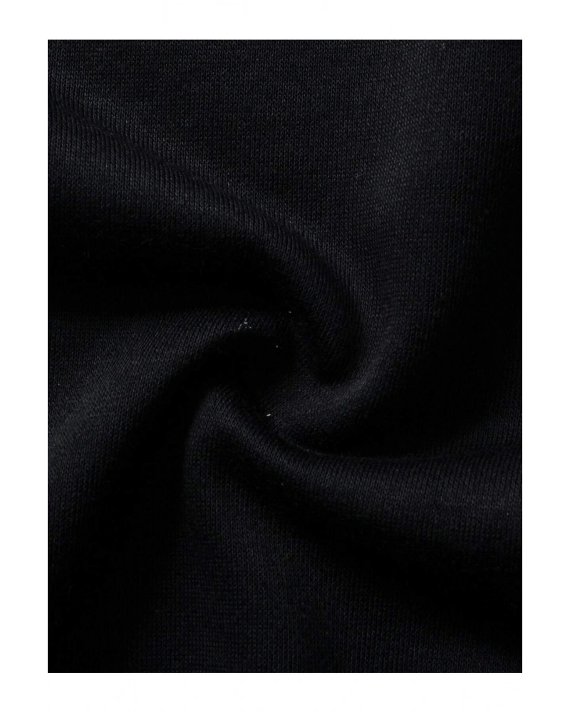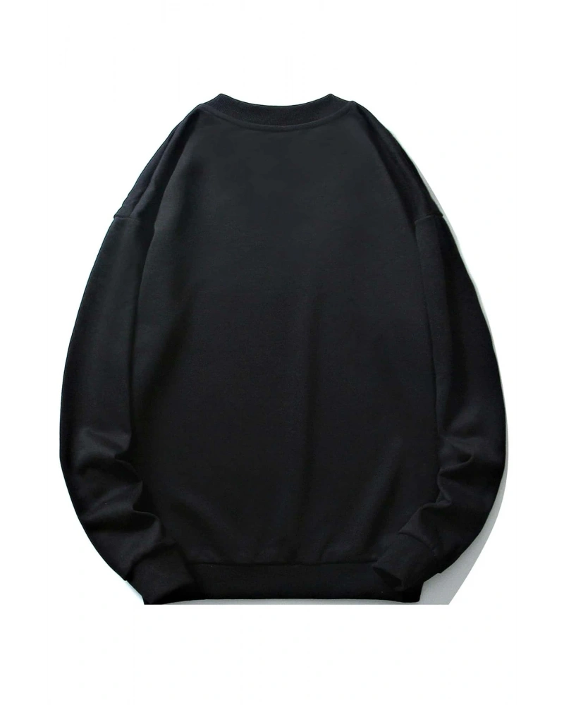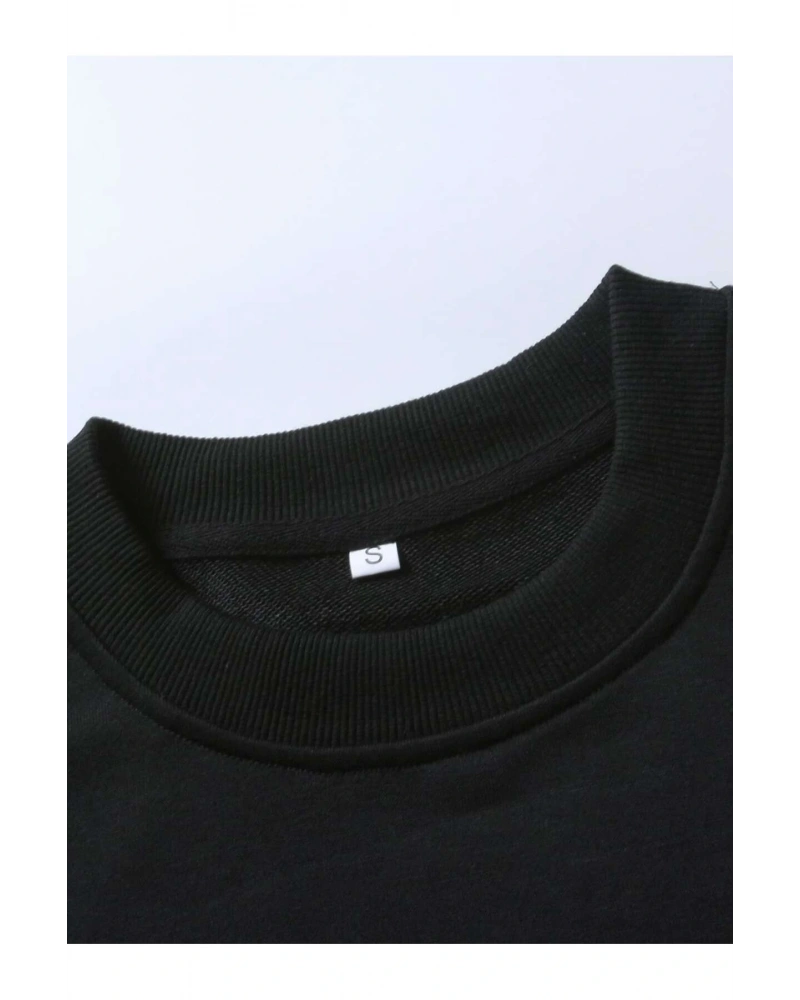 Siyah Yakasız Tüy Baskılı Unisex Sweatshirt