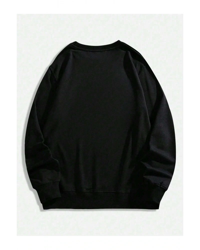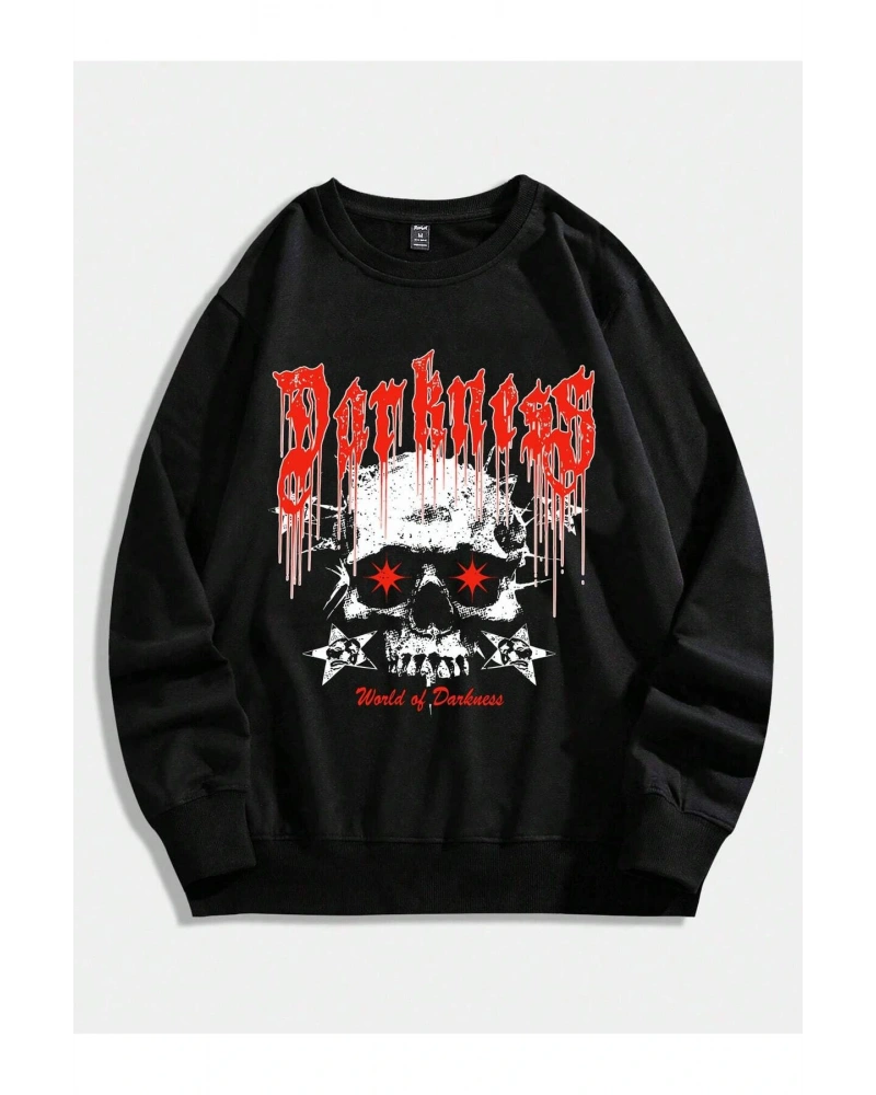 ROMWE Guys Letter & Skull Print Pullover Siyah