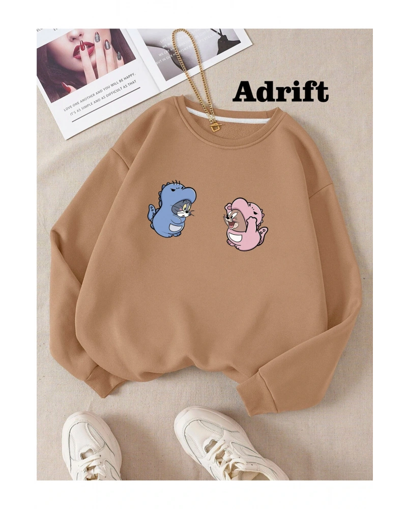 Karikatür & Harf Grafikli Damla Omuzlu Kazak Bej