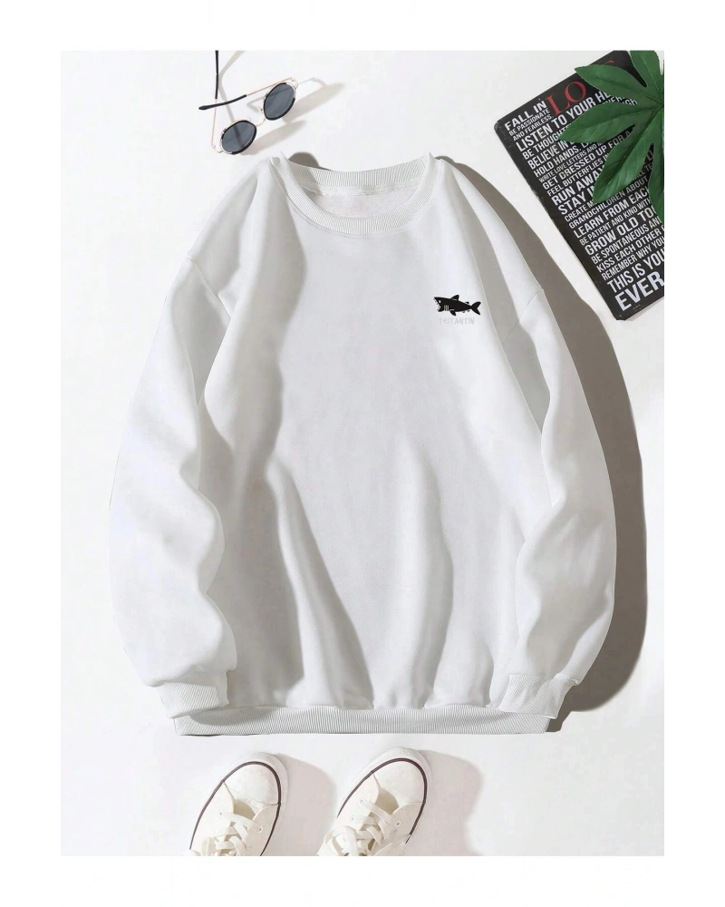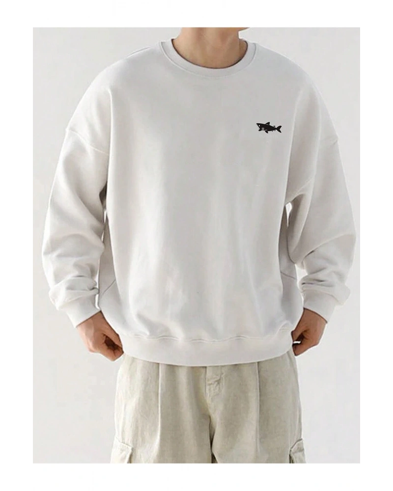 Shark Graphic Drop Shoulder Sweatshirt Beyaz