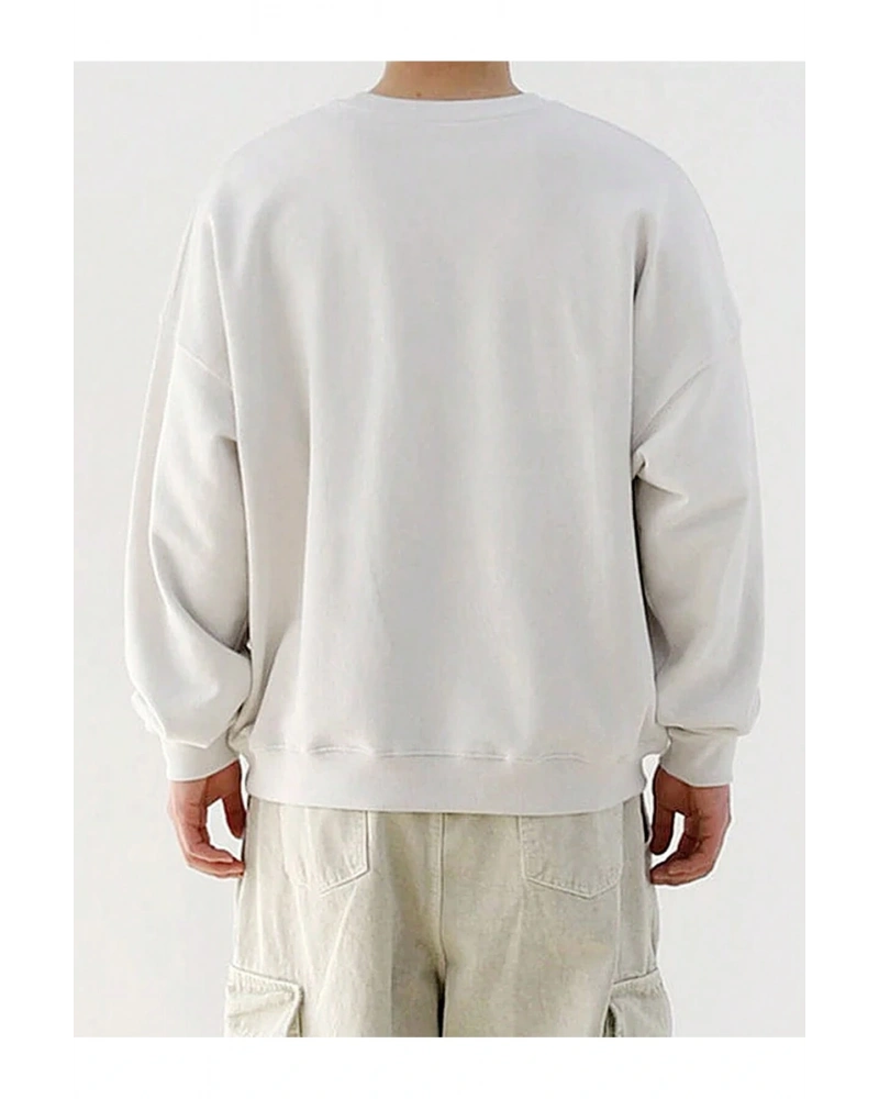 Grafik Düşük Omuz Oversize Sweat Gri