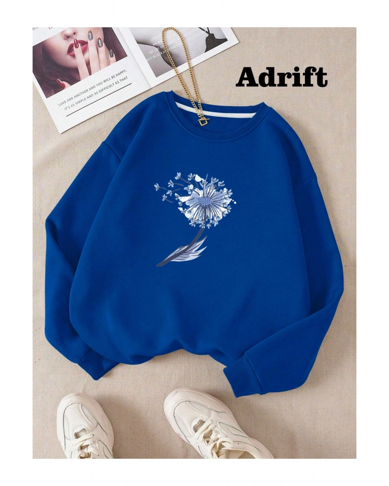 Siyah Yakasız Tüy Baskılı Unisex Sweatshirt