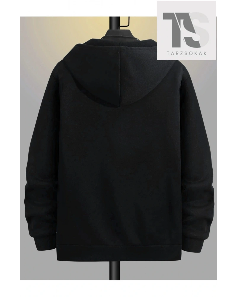Siyah Never Shutup Racer Kalın Şardonlu Unisex Kapşonlu Hırka