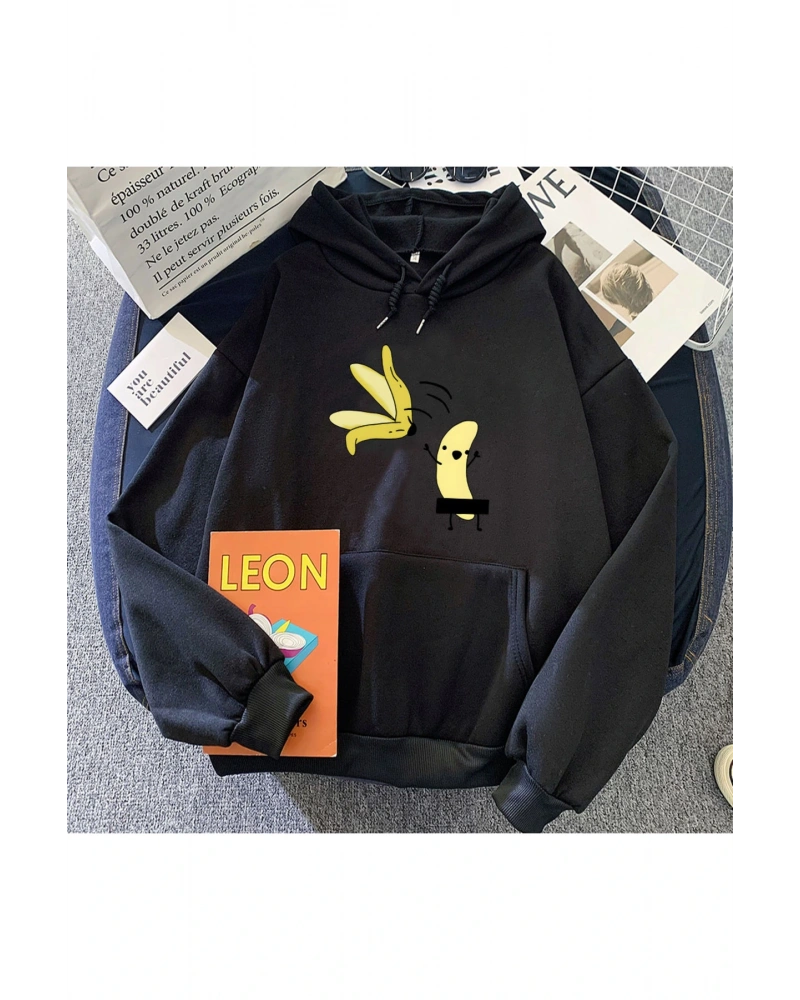 Siyah Çıplak Muz Karikatür Baskılı Casual Tops Karikatür U