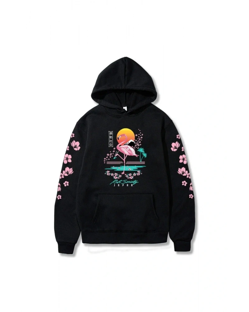 Siyah Grafik Sokak Şıklığı Flamingo Kiraz ÇiçeğiBüyük Boy Hip