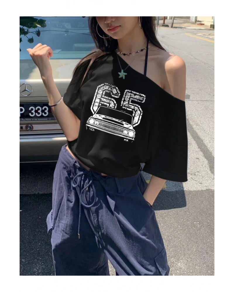 Siyah Kadın Düşük Omuz Kayık Yaka Girls Are Drugs Baskılı