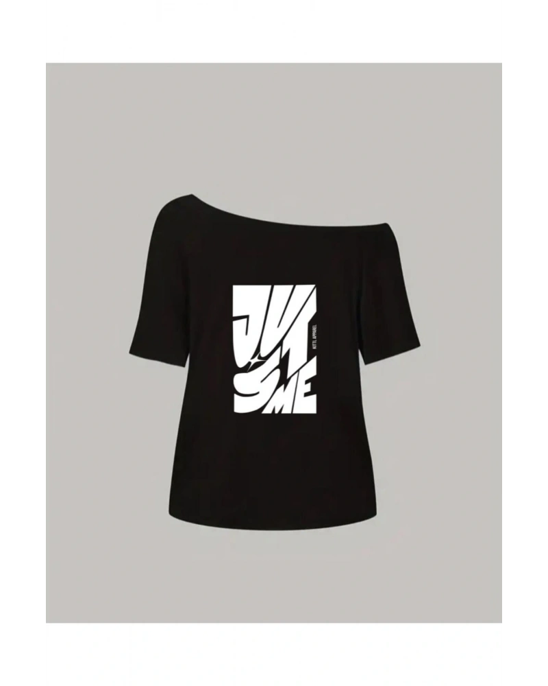 Siyah Kadın Düşük Omuz Kayık Yaka Just Me Baskılı