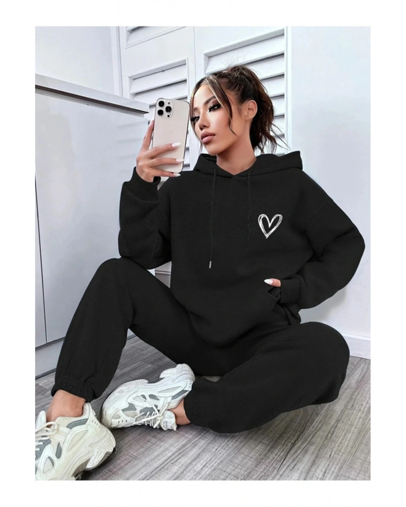 Siyah Kalp Dijital Baskılı Kışlık UNİSEX Eşofman Takımı