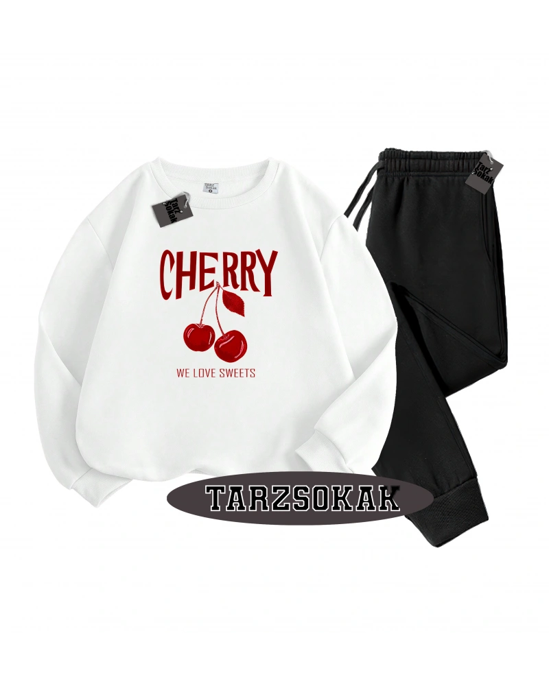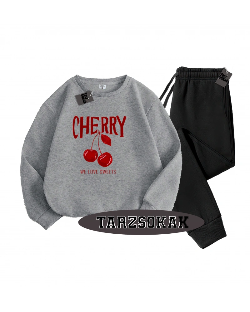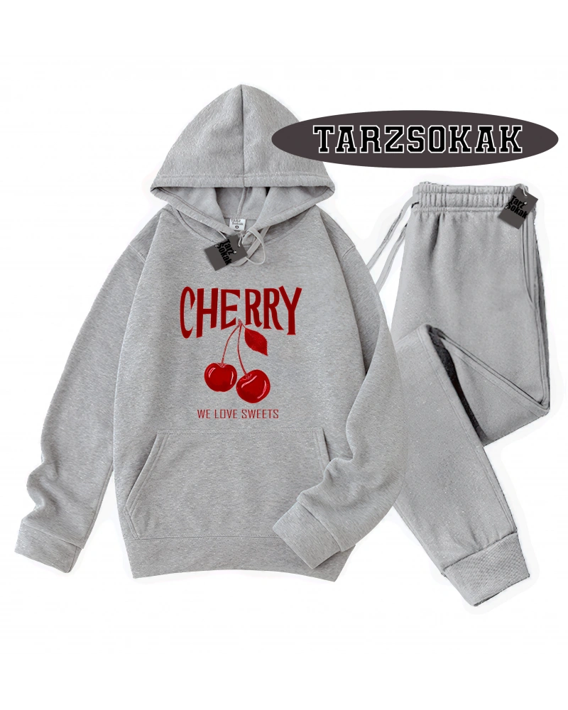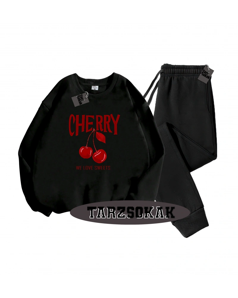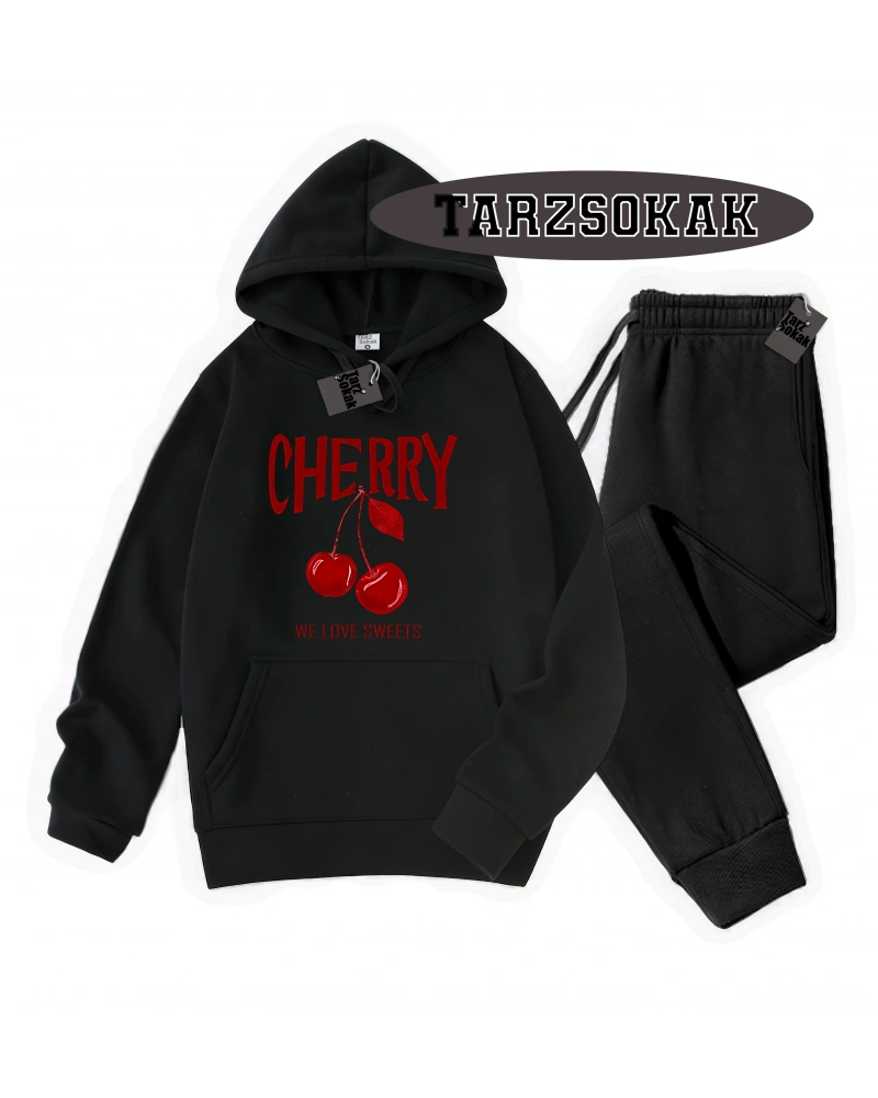Siyah Kapşonlu Cherry Detaylı ikili TAKIM