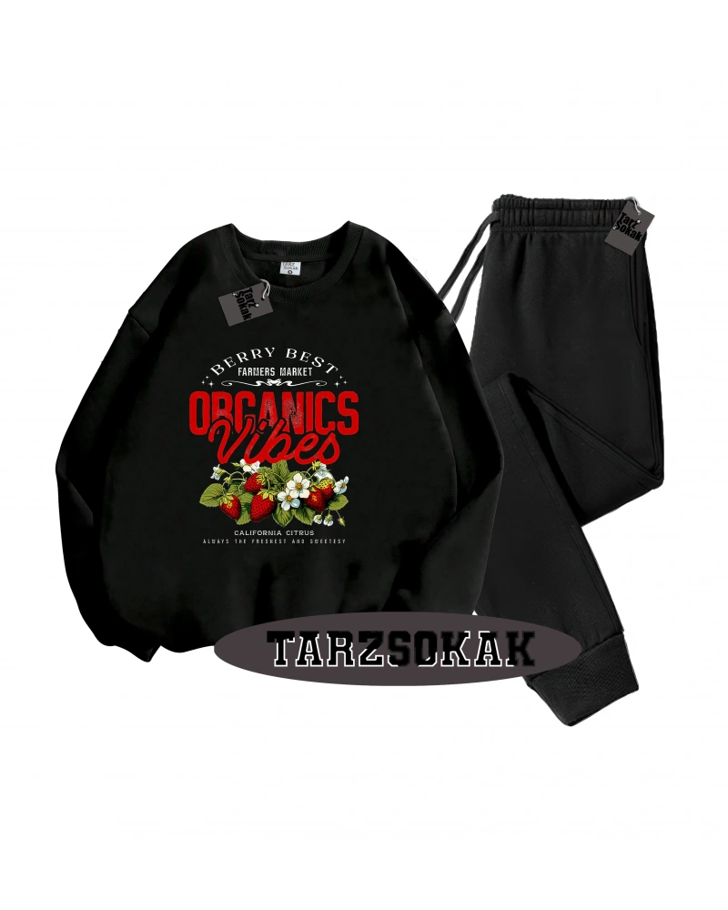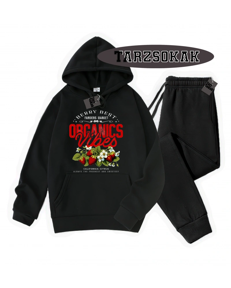 Siyah Kapşonlu Çilek Detaylı ikili TAKIM