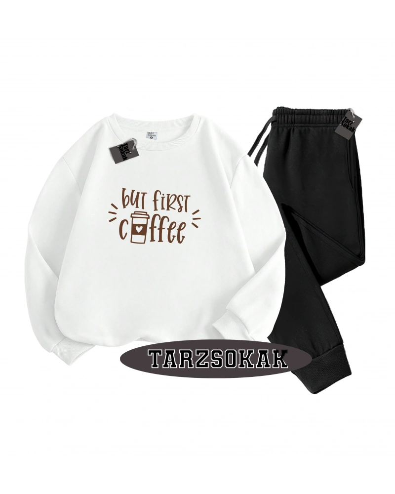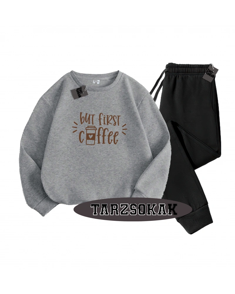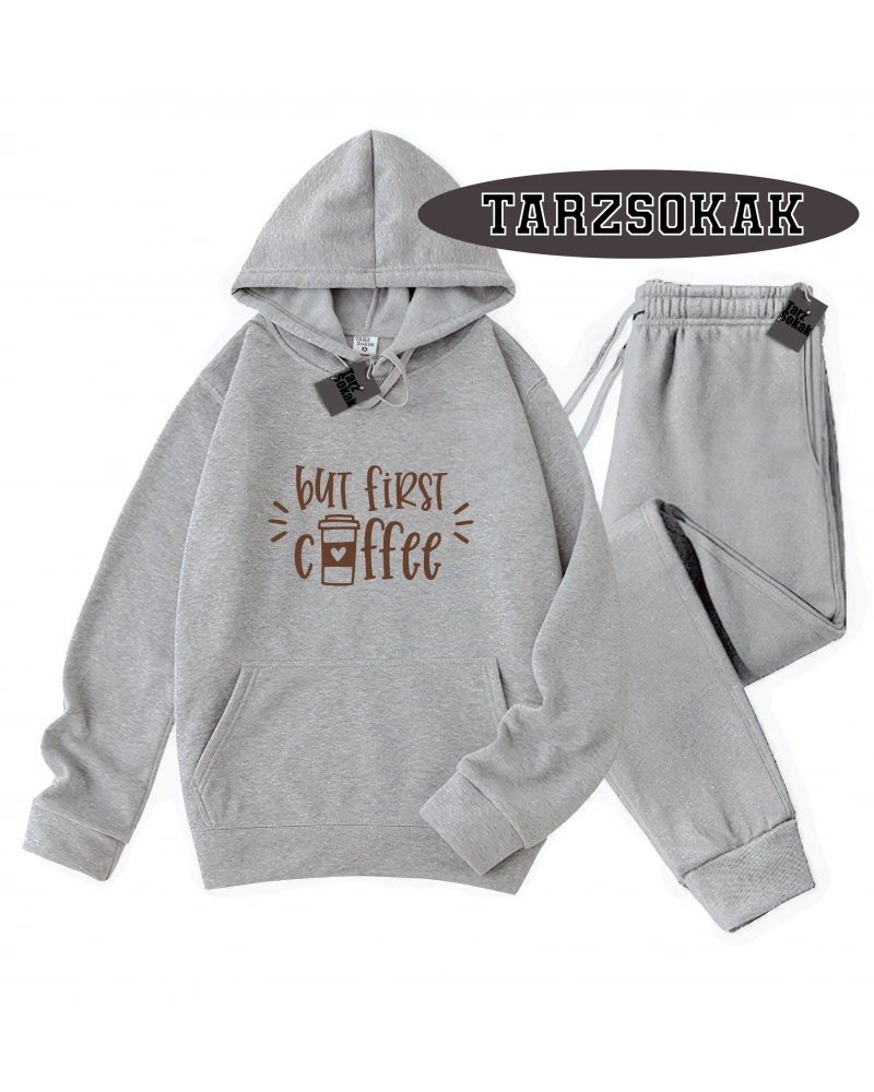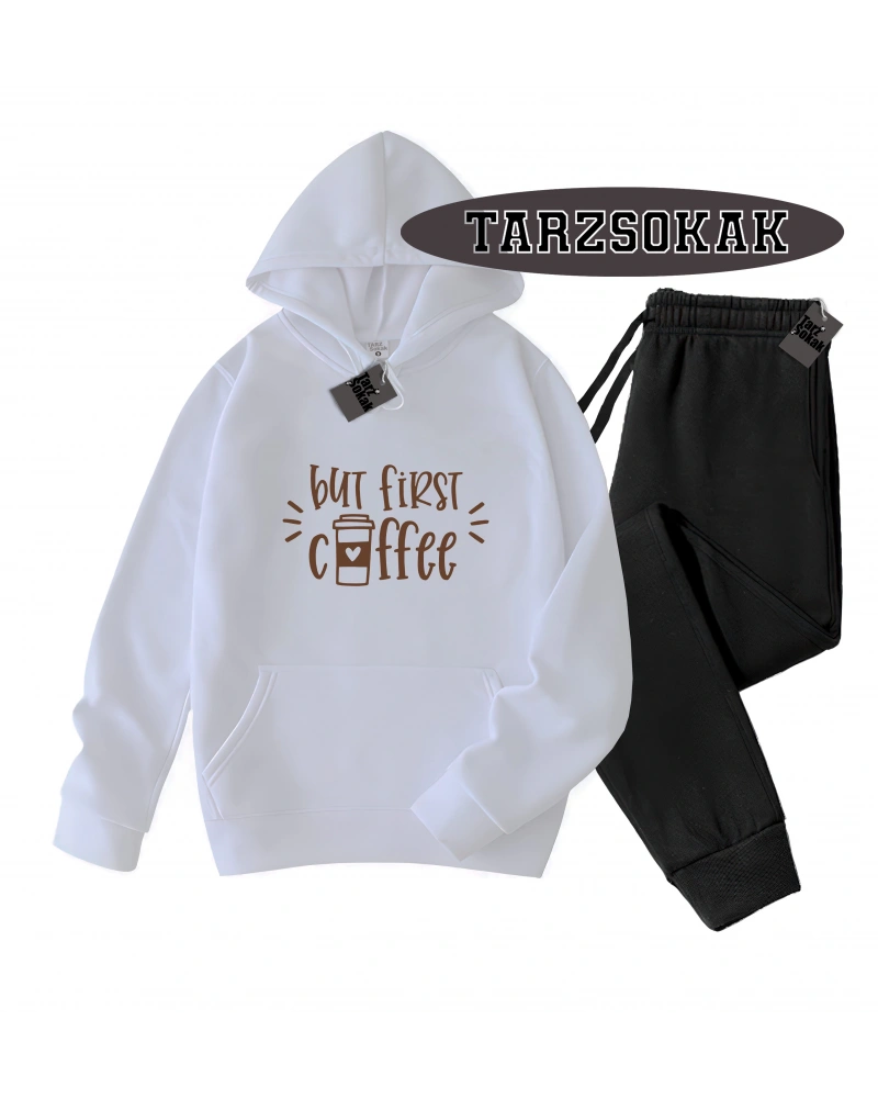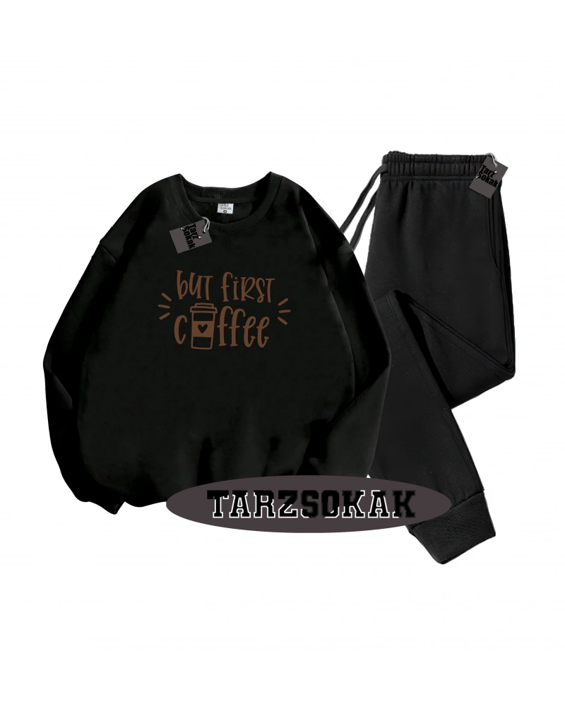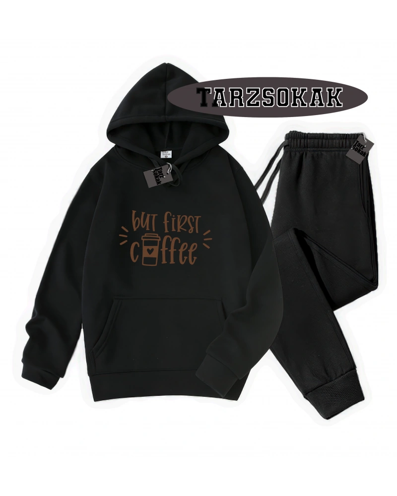 Siyah Kapşonlu Coffee Detaylı ikili TAKIM