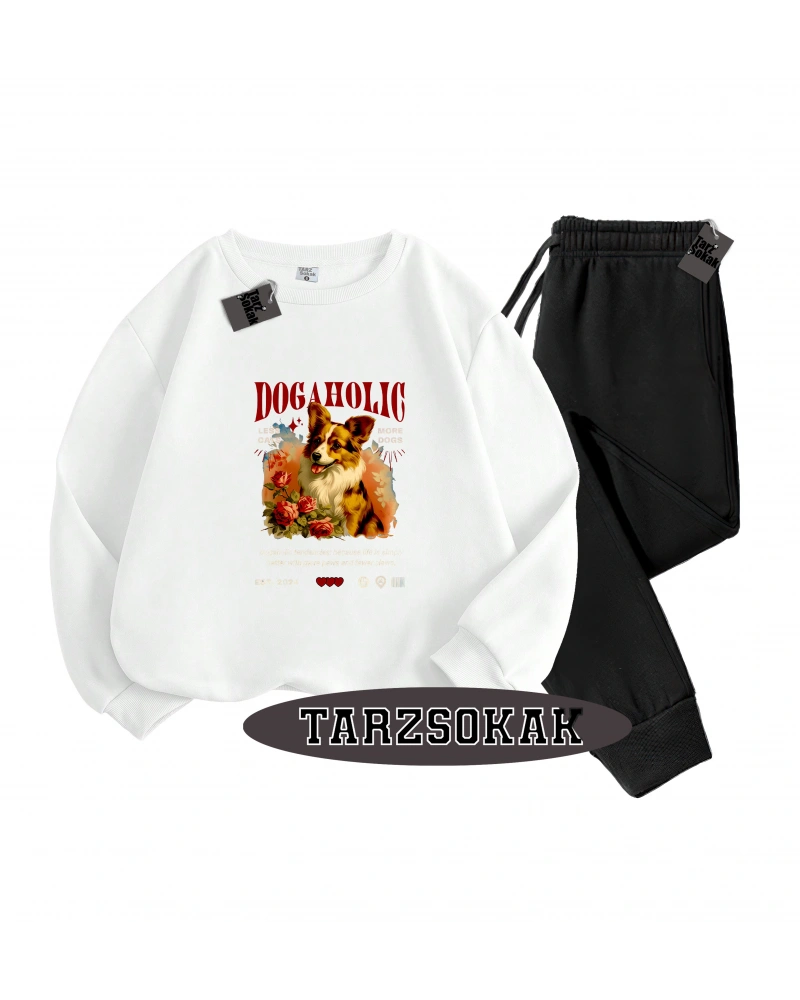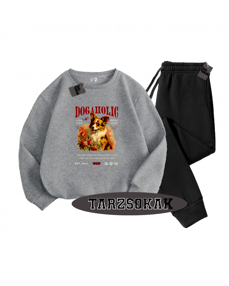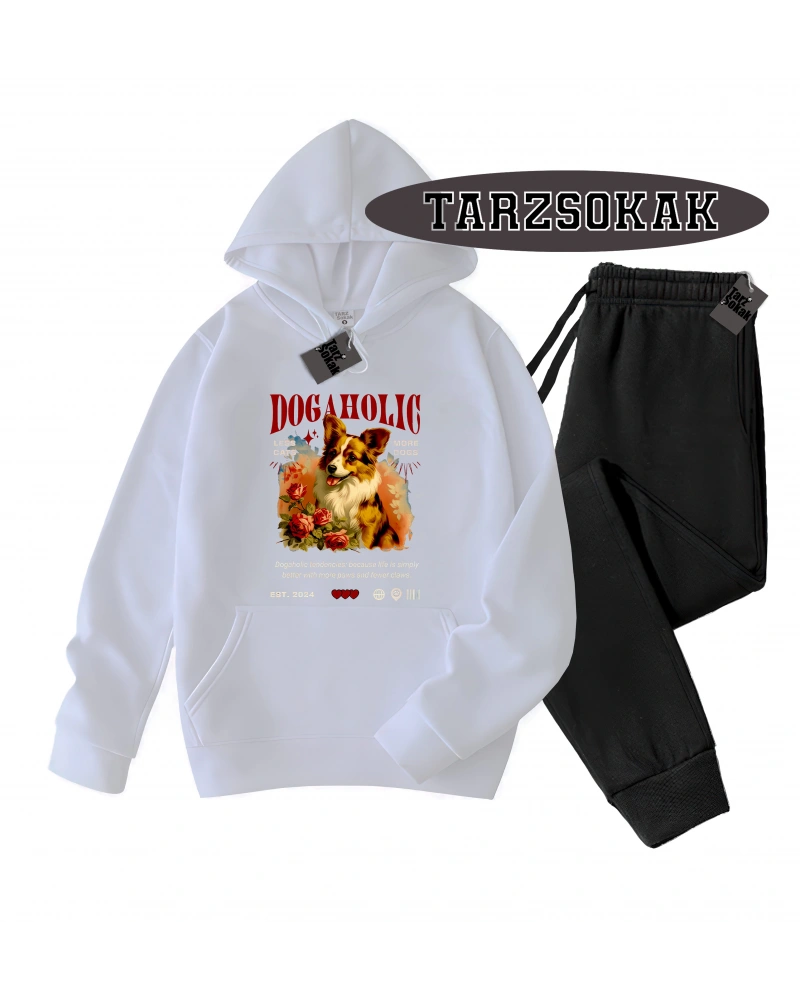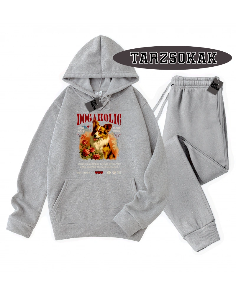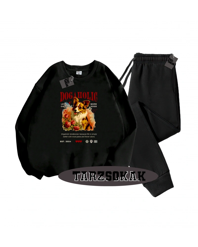 Siyah Kapşonlu Dog Detaylı ikili TAKIM