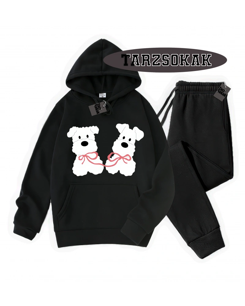 Siyah Kapşonlu Hoppy Detaylı ikili TAKIM