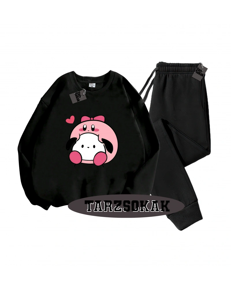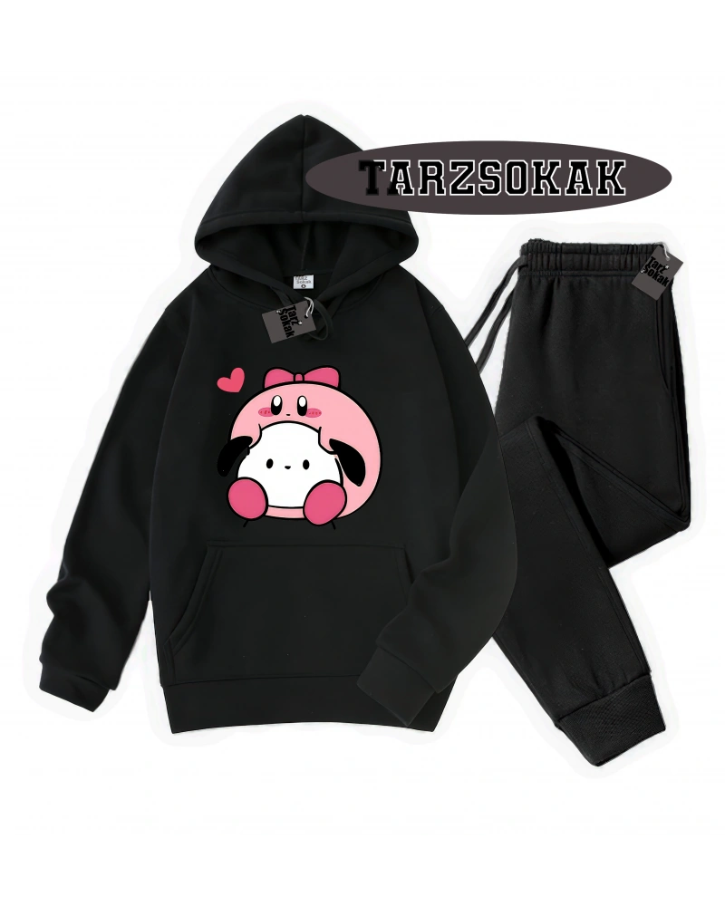 Siyah Kapşonlu Hoppy Detaylı ikili TAKIM