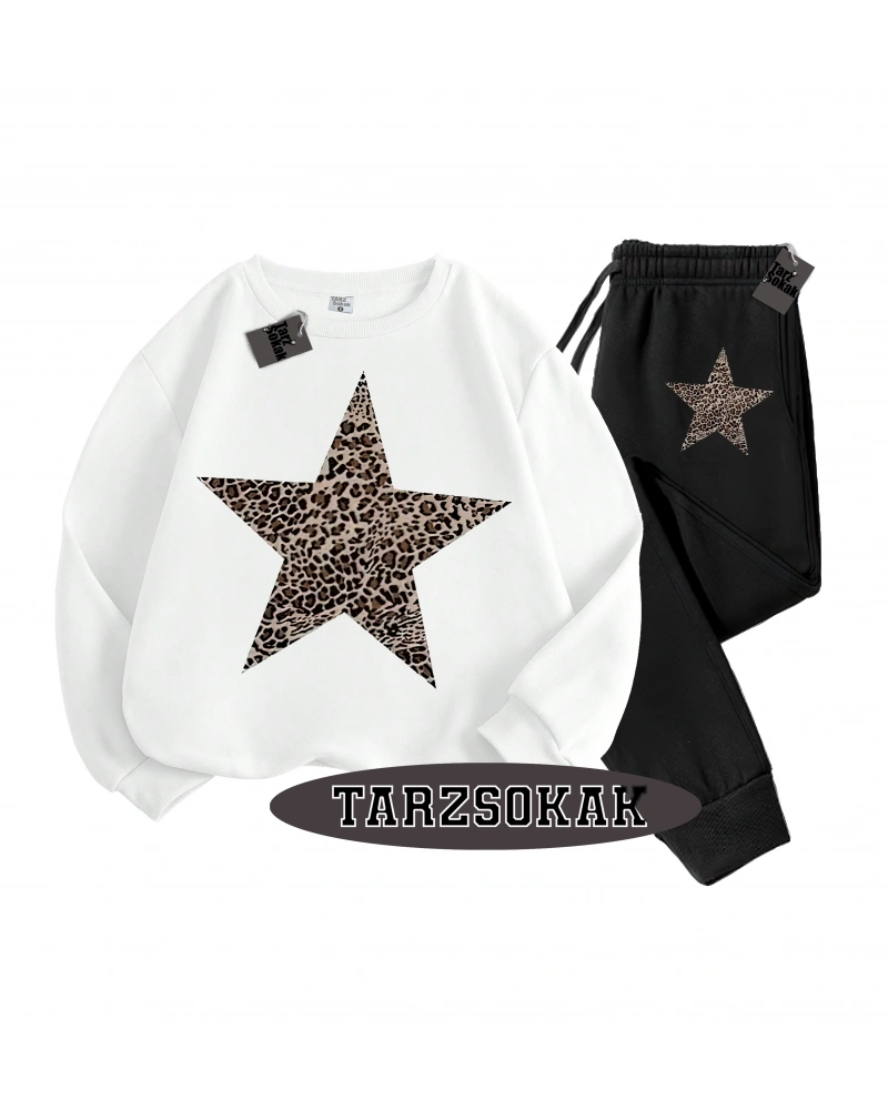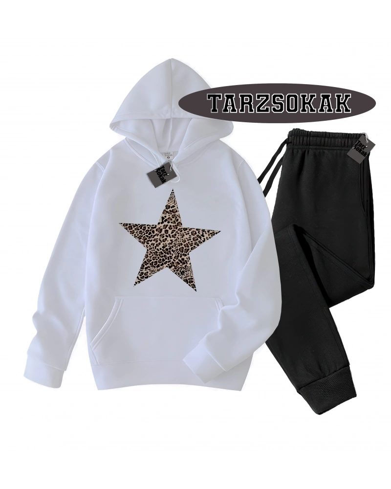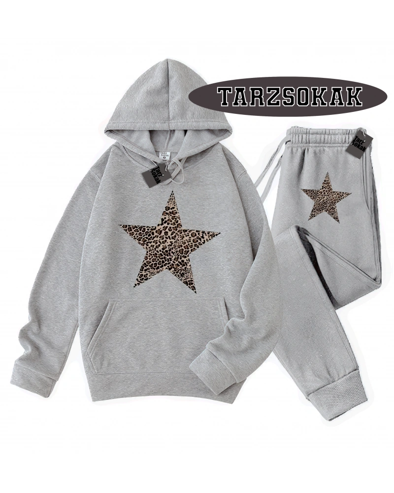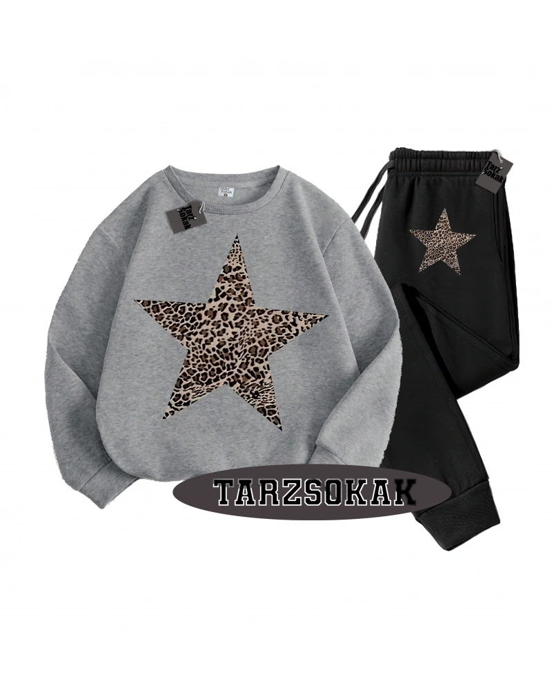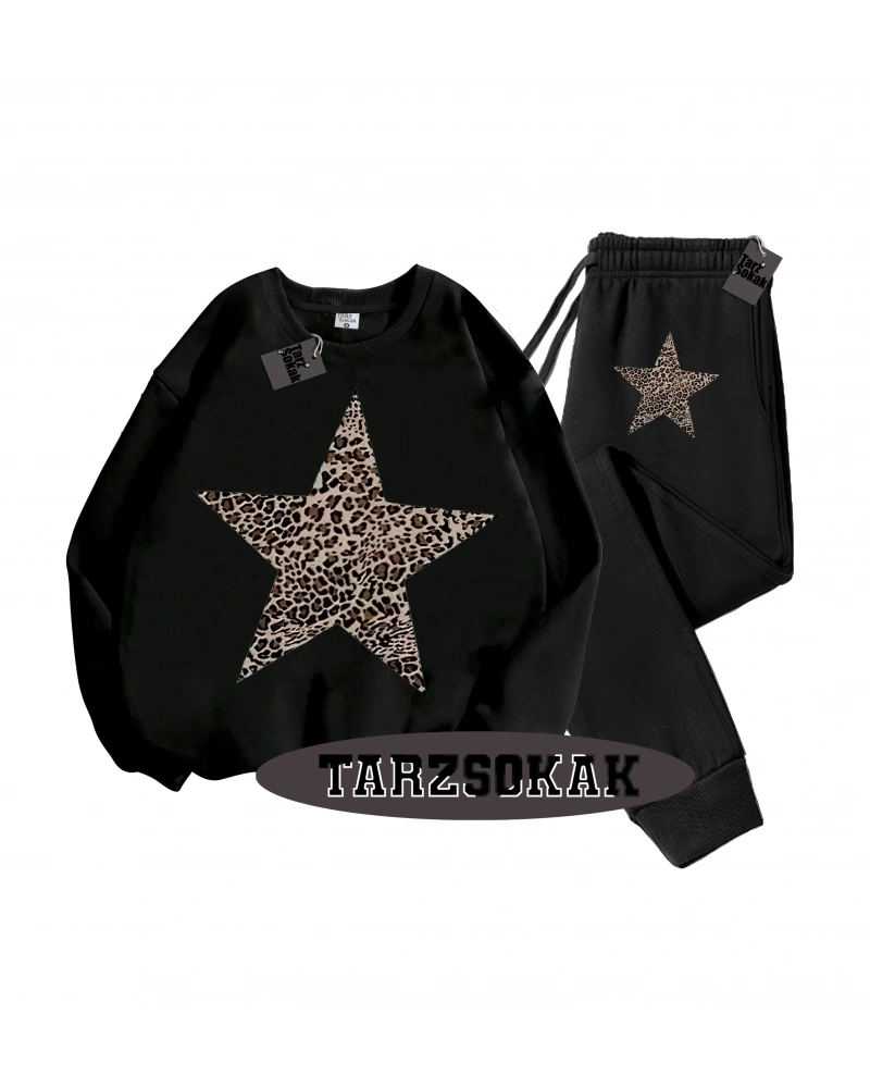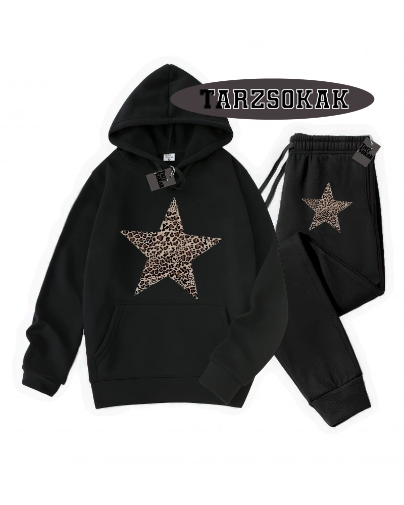Siyah Kapşonlu Leopar Yıldız Detaylı ikili TAKIM