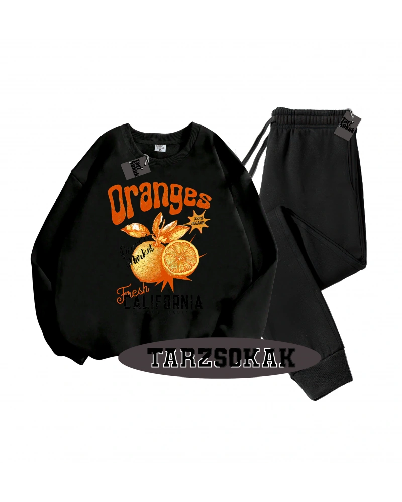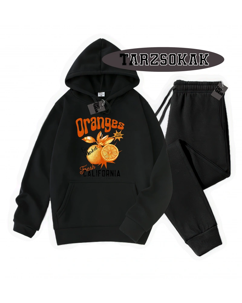Siyah Kapşonlu Oranges Detaylı ikili TAKIM