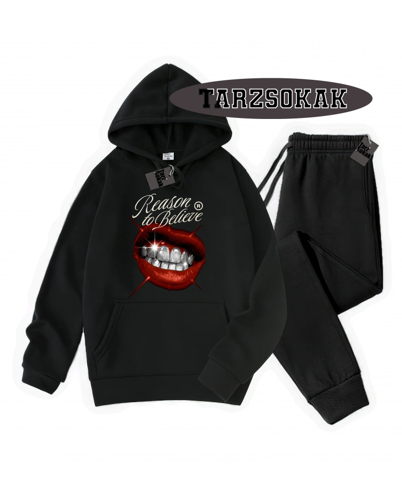 Siyah Kapşonlu Reason Detaylı ikili TAKIM