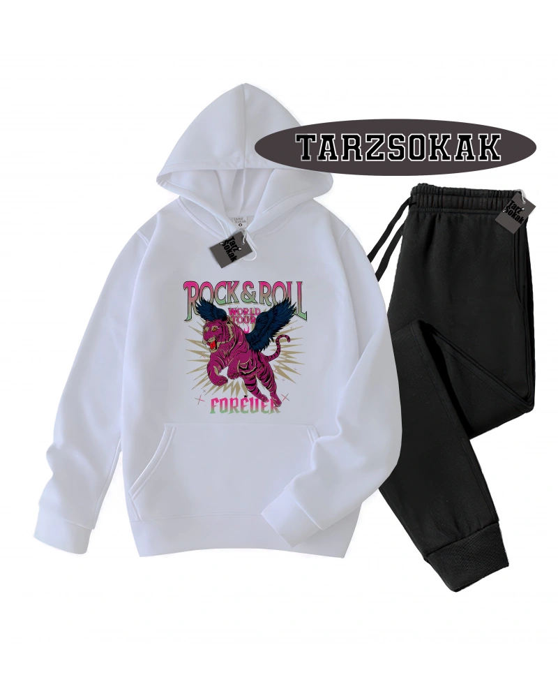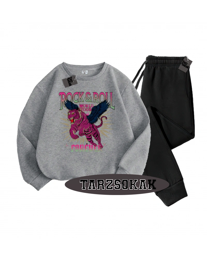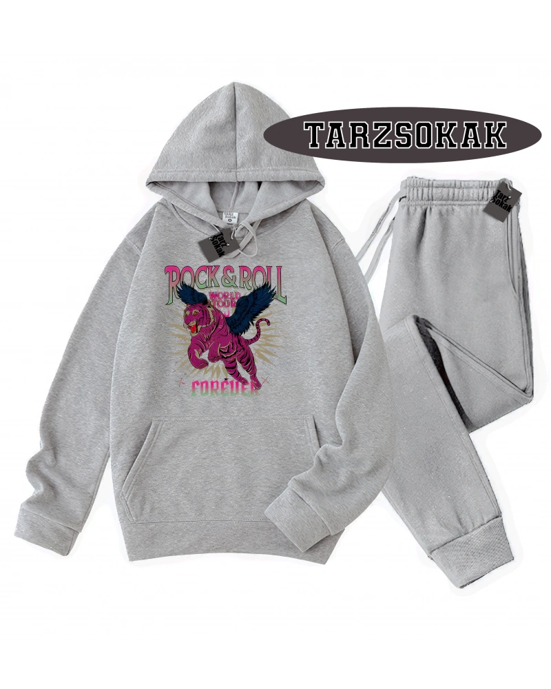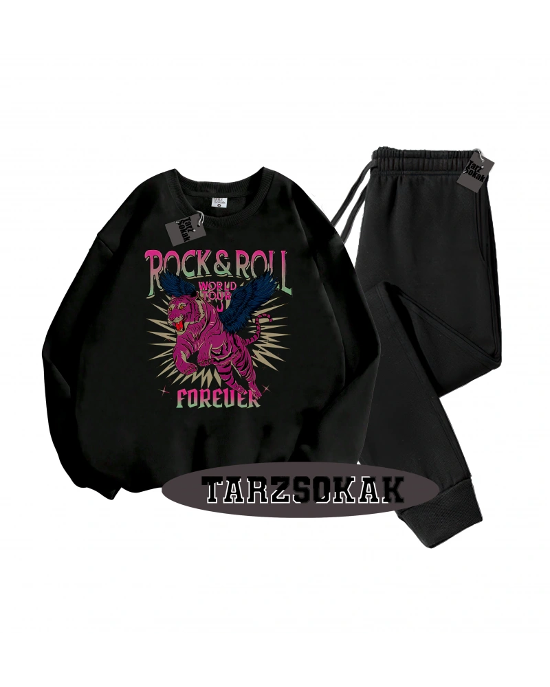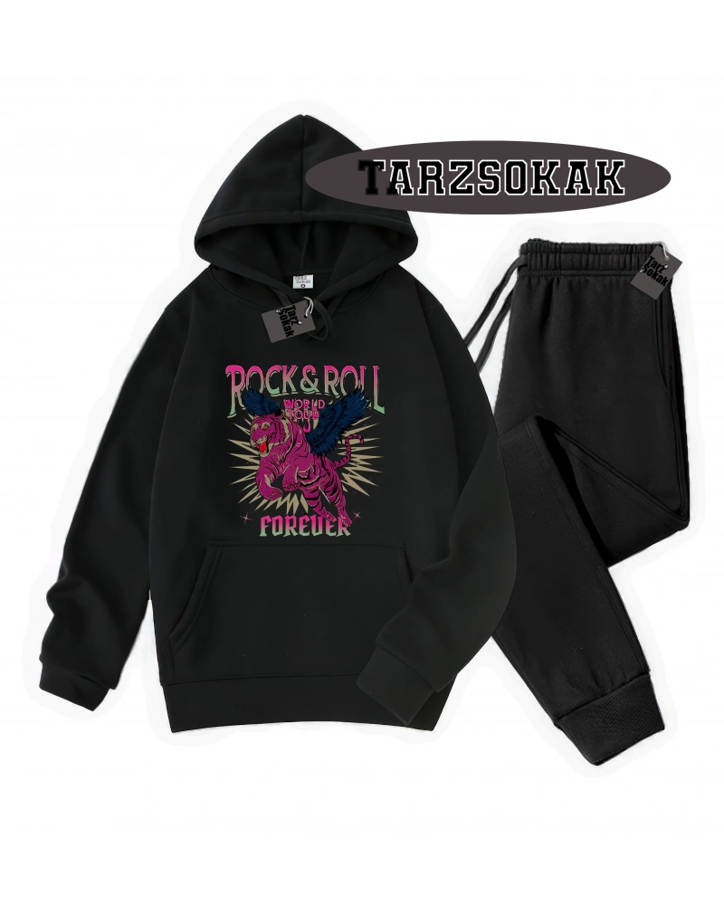 Siyah Kapşonlu RockRoll Detaylı ikili TAKIM
