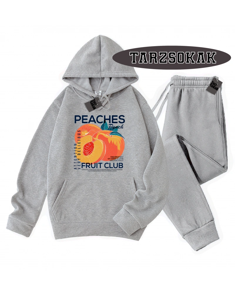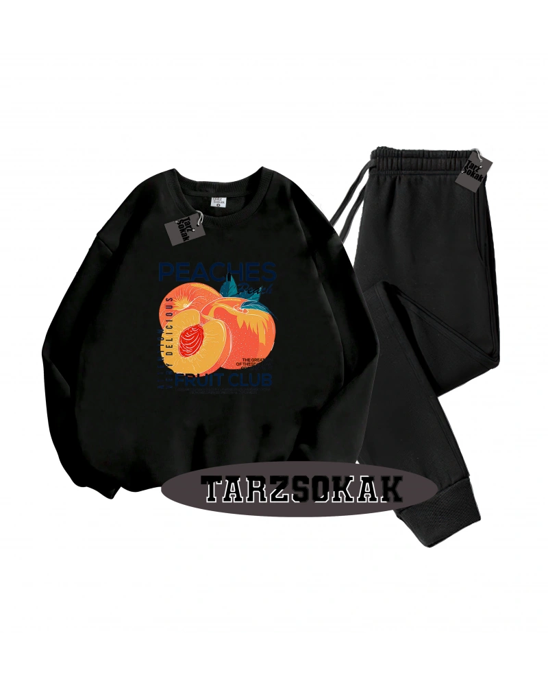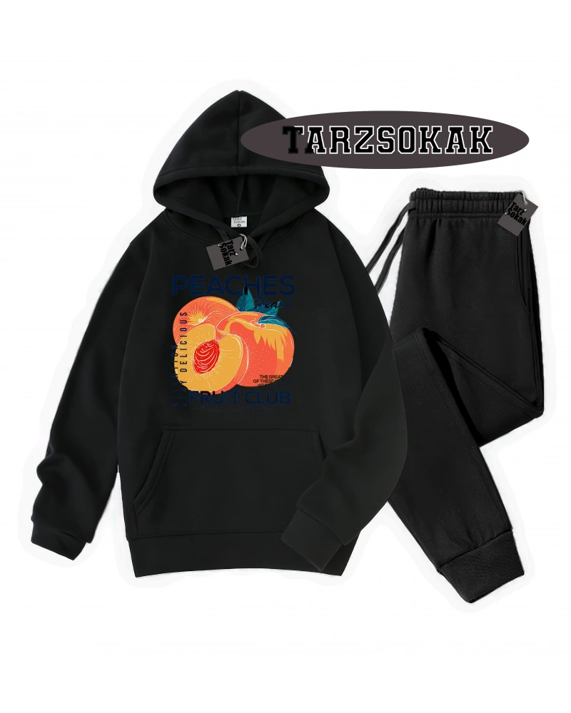 Siyah Kapşonlu ŞEftali Detaylı ikili TAKIM