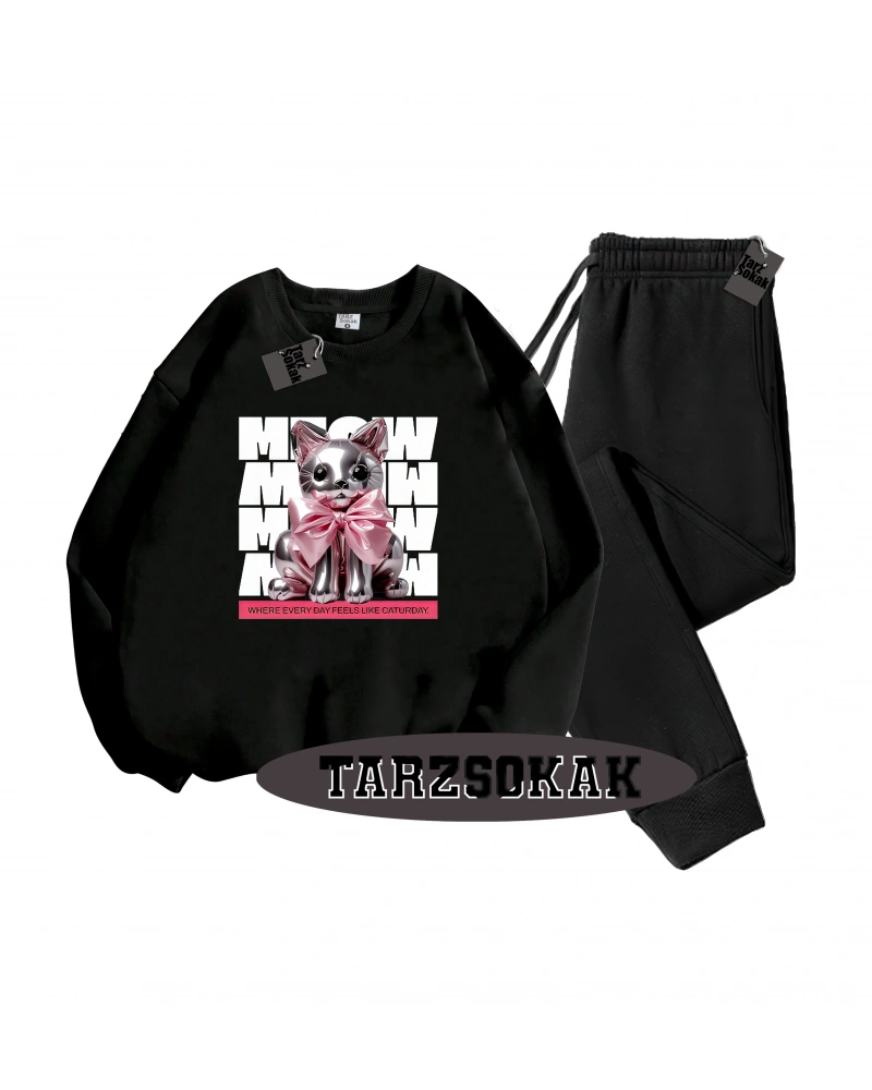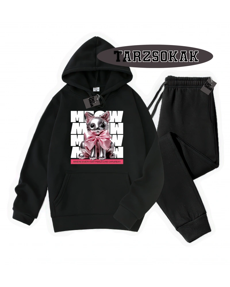 Siyah Kapşonlu Cat KEDİ Detaylı ikili TAKIM