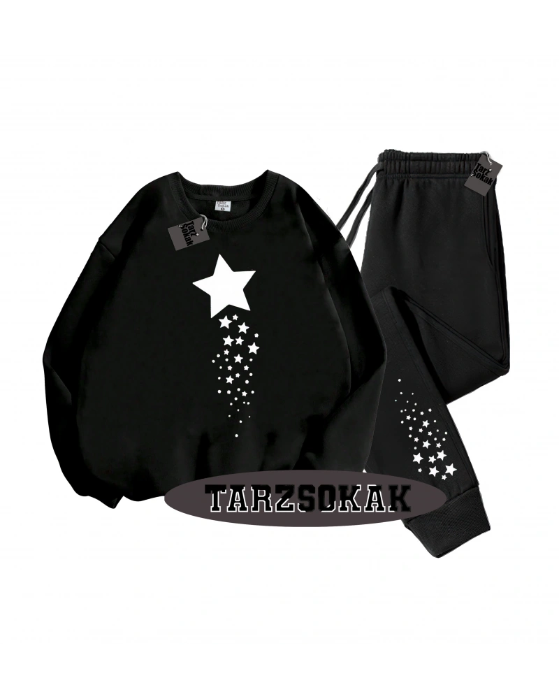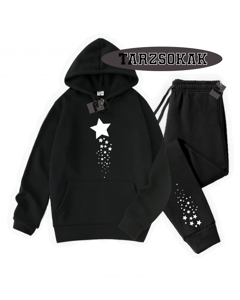 Siyah Kapşonlu Yıldız Detaylı ikili TAKIM