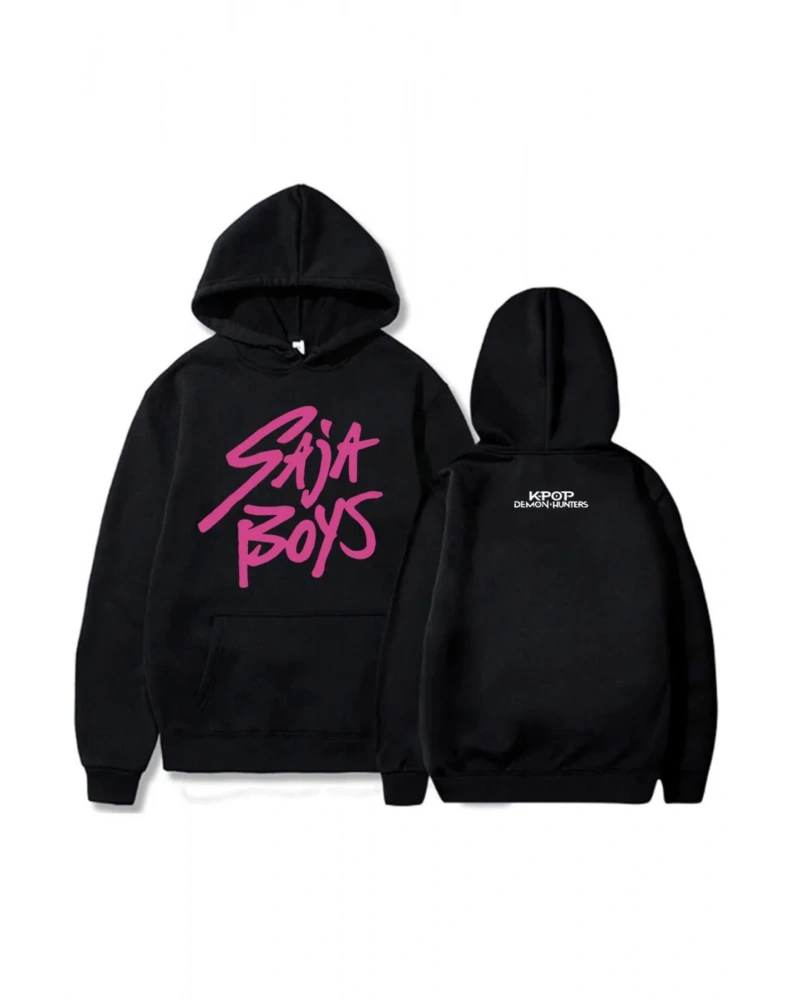Siyah KPop Demon Hunters Saja Boys HoodieFilmu Rahat Ka