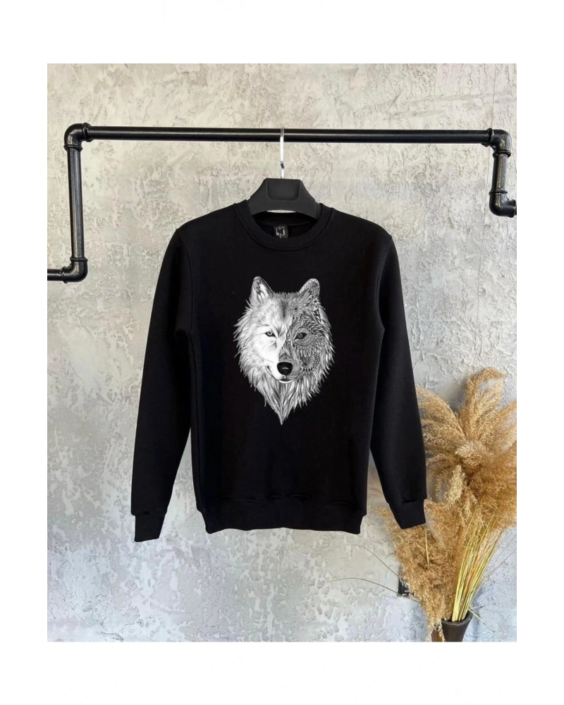Siyah Oversize Alfa Kurt Baskılı Kapşonsuz 0 Yaka Pamuklu Unisex Sweatshirt
