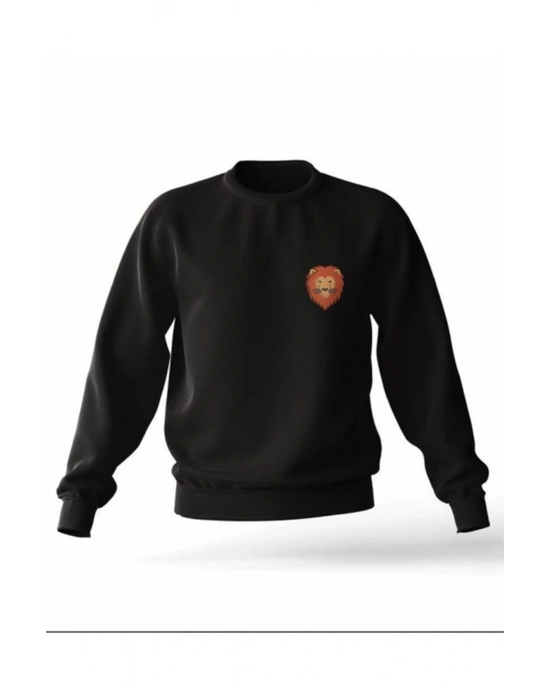 Sıyah Oversıze Aslan Minimal Baskılı 0 Yaka Kapşonsuz Unisex Pamuklu Sweatshirt Siyah