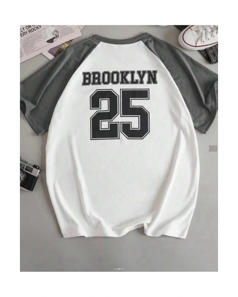 Siyah Oversize Çift Renk Brooklyn Baskılı Unisex Tshirt