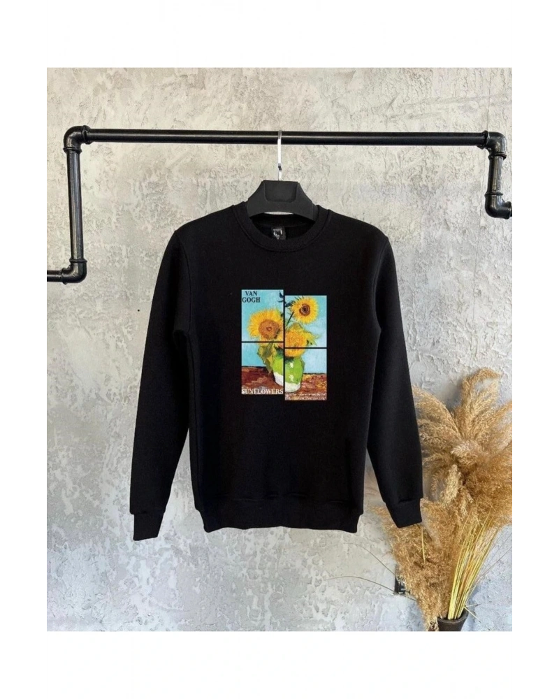 Siyah Oversize Tasarım Baskılı Kapşonsuz 0 Yaka Pamuklu Unisex Sweatshirt