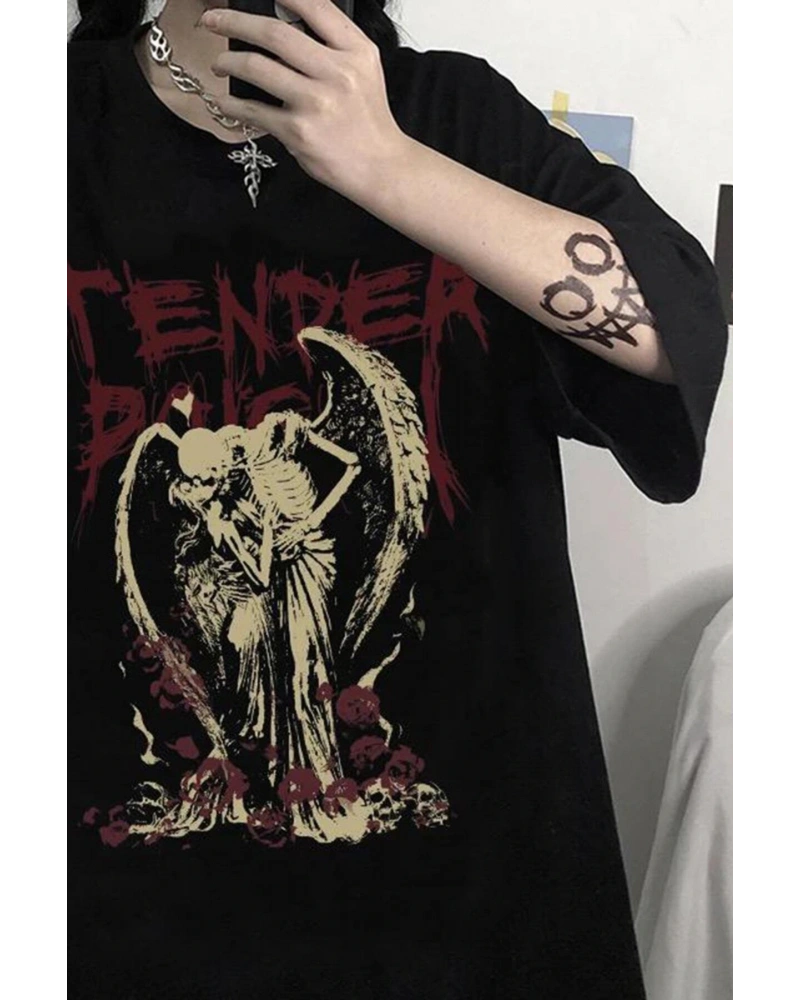 Siyah Tender Skeleton Angel Couple T-shirt Rbts410229