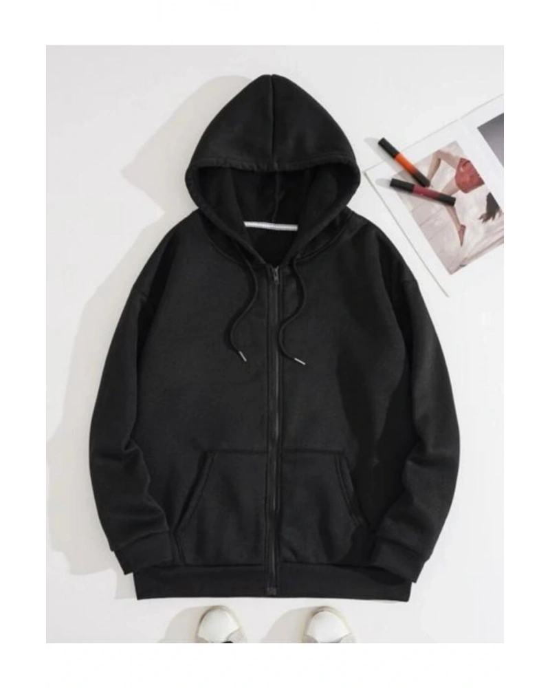 Siyah Never Shutup Racer Kalın Şardonlu Unisex Kapşonlu Hırka