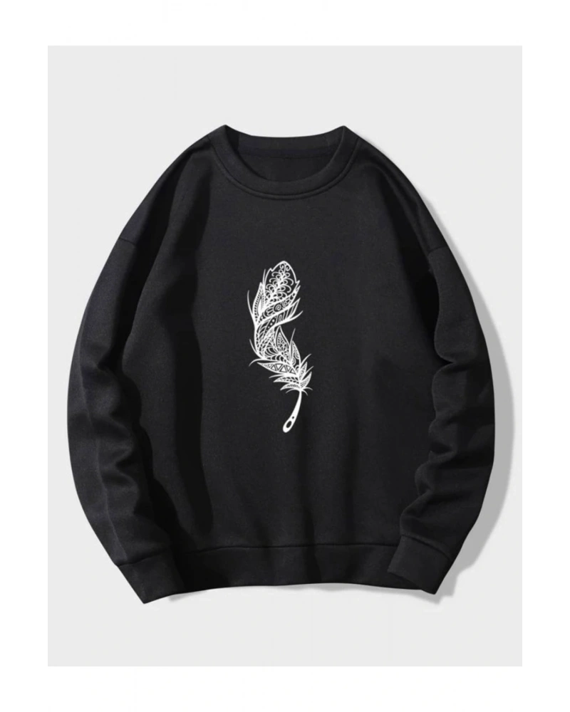 Siyah Yakasız Tüy Baskılı Unisex Sweatshirt