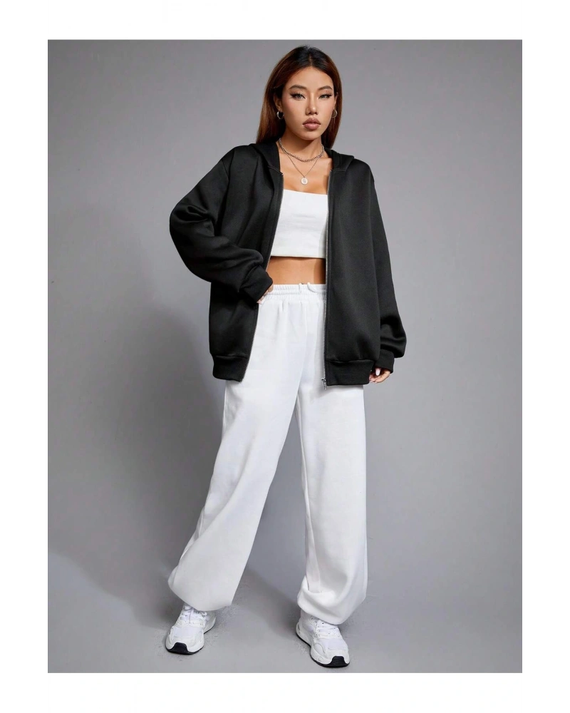 YQYQ----- Oversize Kulaklık Genç Kız Siyah Beyaz Tasarım Baskılı Unisex Kapüşonlu Sweatshirt Hoodie