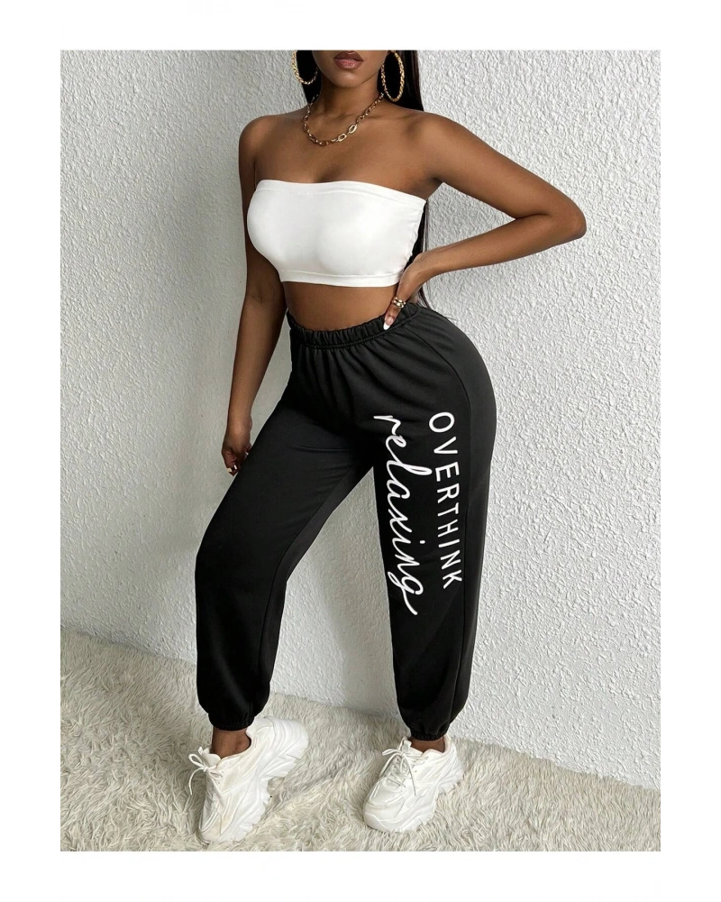 Sporsity Letter Graphic Drawstring Waist Eşofman Altı